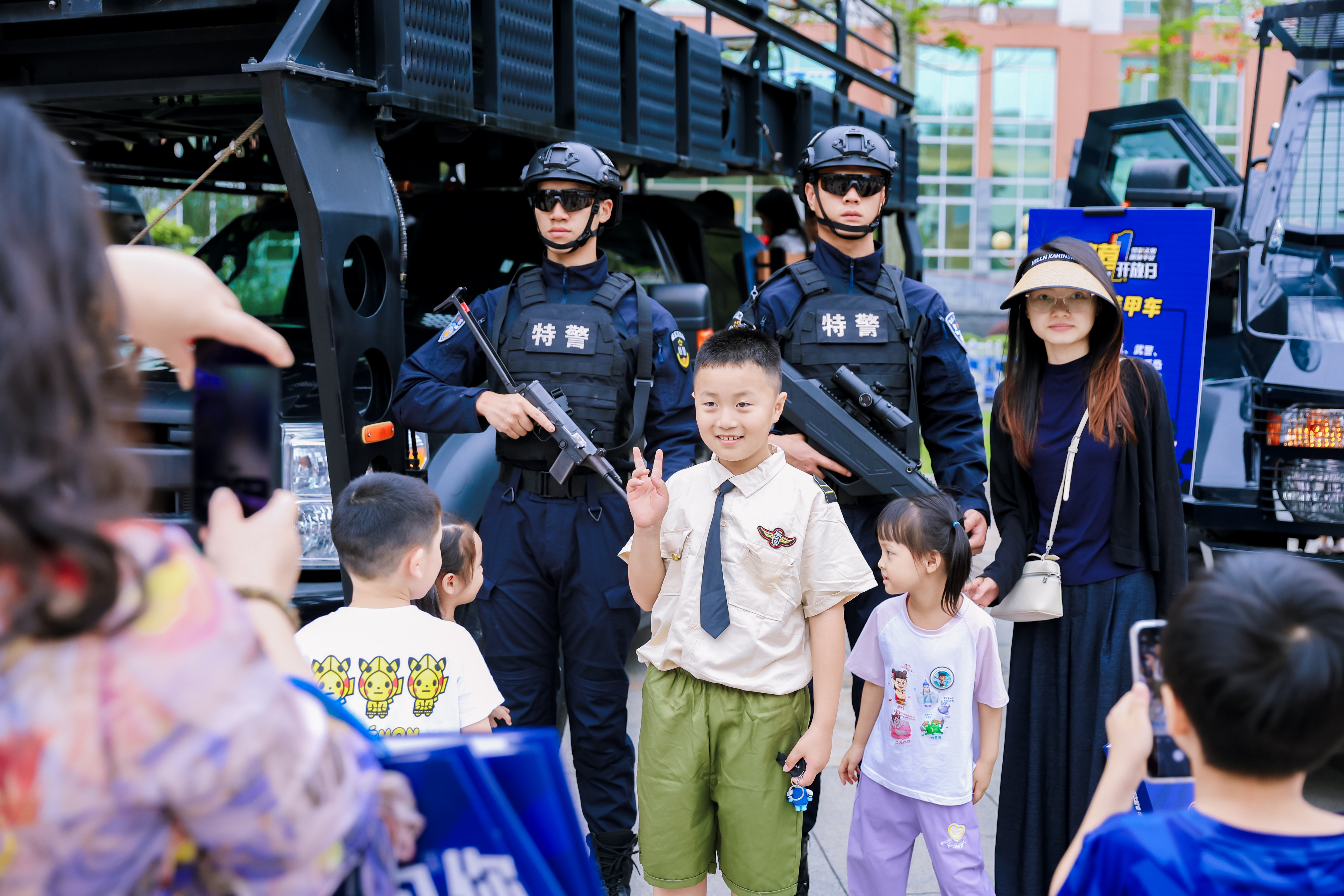 “特警硬實(shí)力”互動(dòng)區(qū),市民朋友和特警合影。