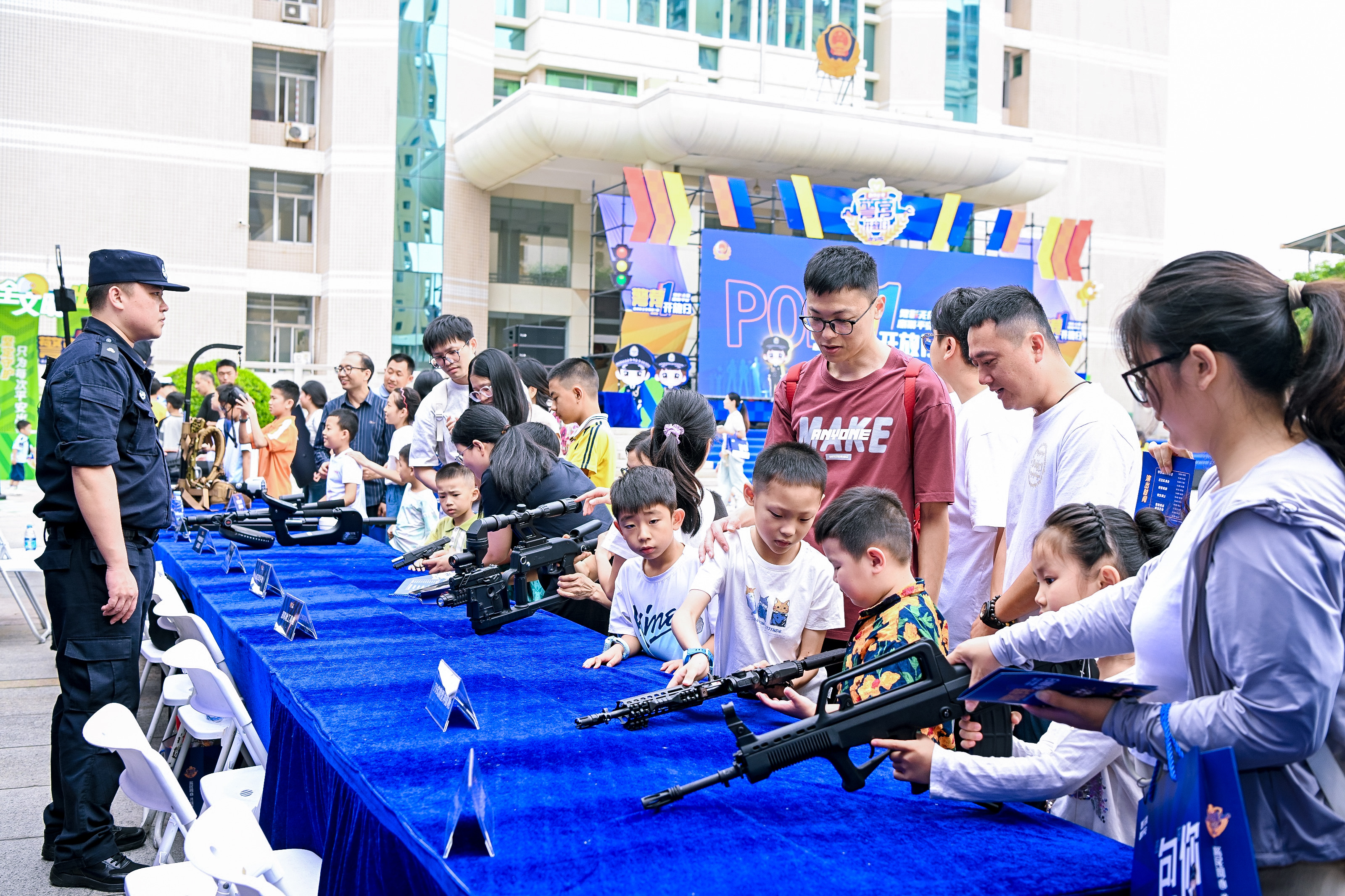 “特警硬實(shí)力”互動(dòng)區(qū)的特種槍械展示,吸引眾多小朋友前來(lái)體驗(yàn)。
