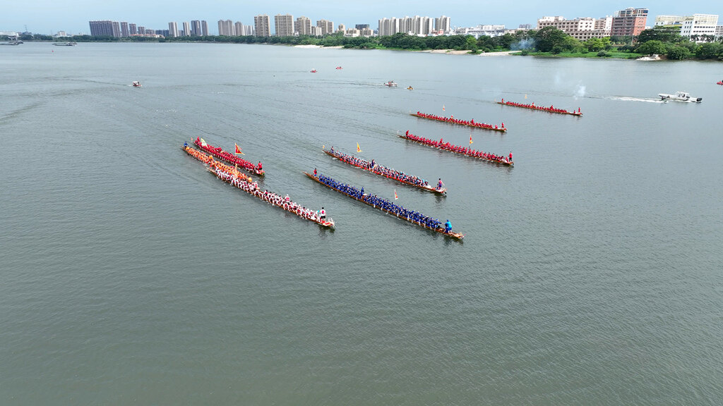 園洲鎮(zhèn)寮仔村來自各村及香港的八支龍舟進行競渡。