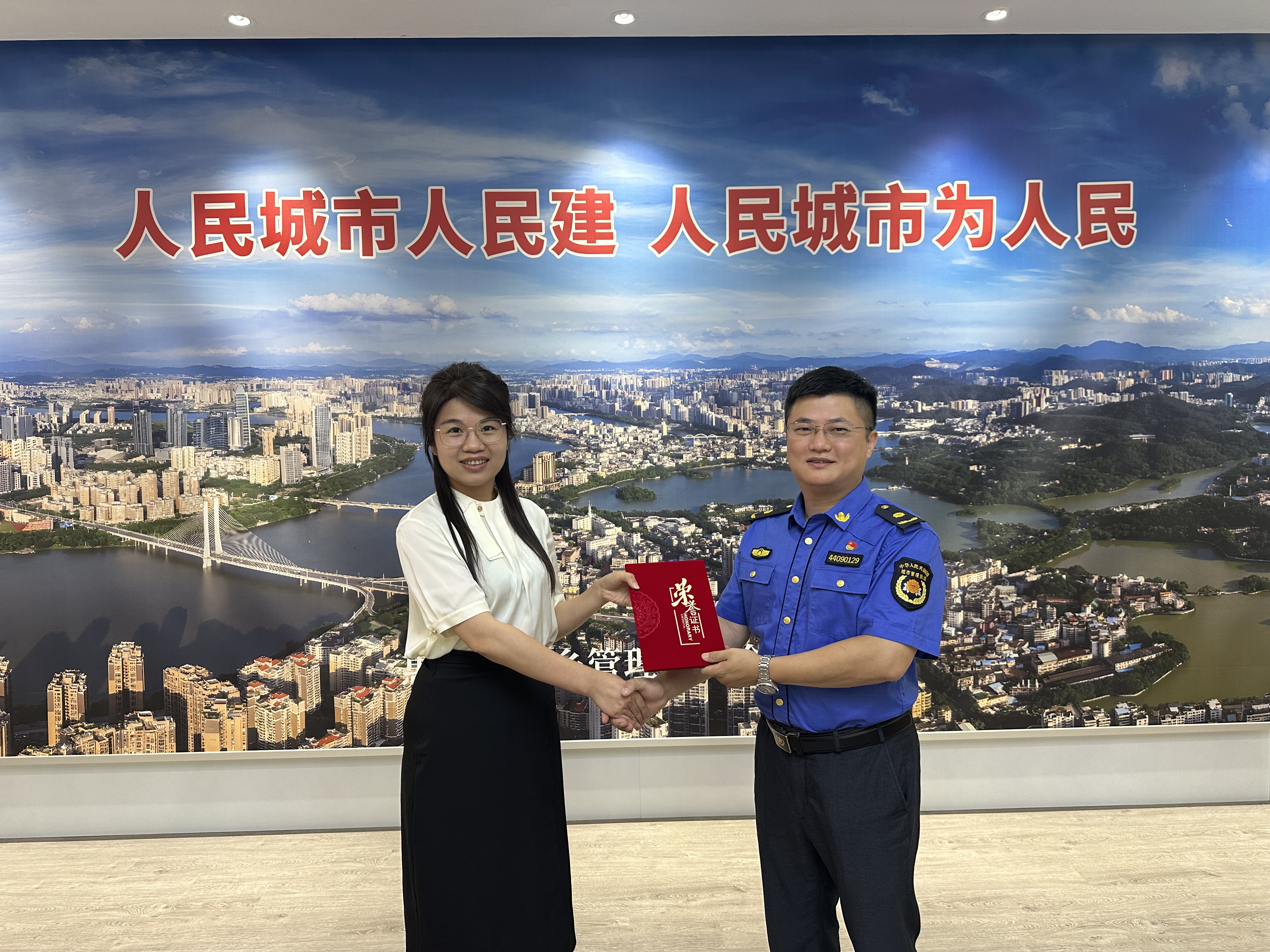 “見義勇為顯擔當,感謝黃偉斌同志飛身制停車輛,保護了兒童安全。他用實際行動詮釋了共產(chǎn)黨員的初心使命,為社區(qū)樹立了榜樣!”5月26日,惠城區(qū)龍豐街道新聯(lián)社區(qū)工作人員代表社區(qū)全體居民來到市城鄉(xiāng)管理和綜合執(zhí)法局,為該局工作人員黃偉斌頒發(fā)了榮譽證書。