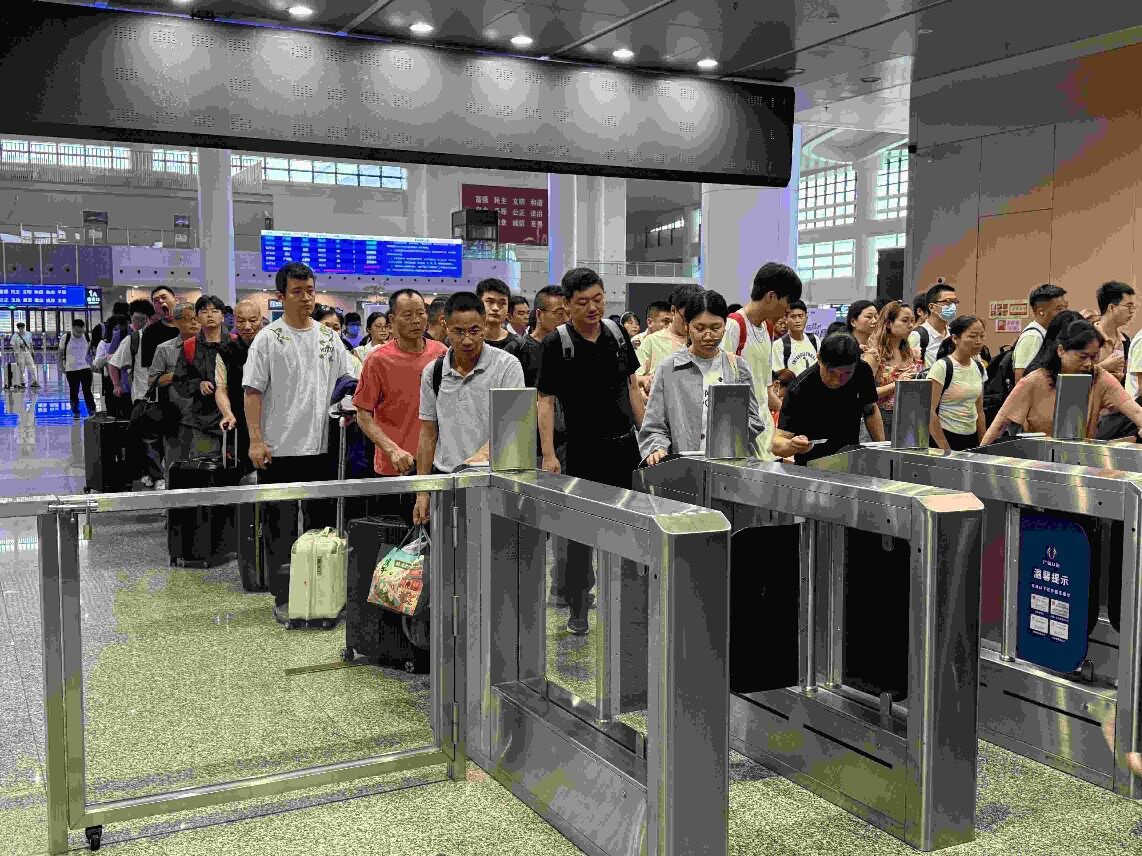 惠州北站還聯(lián)合各設(shè)備單位對(duì)電梯、安檢設(shè)備、旅服系統(tǒng)、消防設(shè)施等進(jìn)行了全面檢查,確保設(shè)備設(shè)施正常使用。全面做好大客流組織的應(yīng)對(duì)工作,確保高峰期能夠及時(shí)增開安檢通道,提高進(jìn)站效率,并根據(jù)實(shí)時(shí)客流情況,加派人手在站內(nèi)關(guān)鍵崗位加強(qiáng)宣傳引導(dǎo)、咨詢答疑、協(xié)助退改簽以及老幼病殘?jiān)兄攸c(diǎn)旅客愛心幫扶等志愿服務(wù)。針對(duì)開車時(shí)間不足15分鐘的旅客,車站設(shè)置了進(jìn)站、安檢綠色通道,確保旅客出行安全暢通。