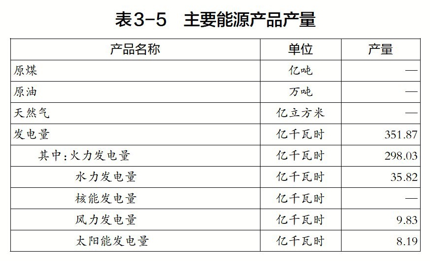 2023年,主要能源產(chǎn)品產(chǎn)量詳見(jiàn)表3-5。