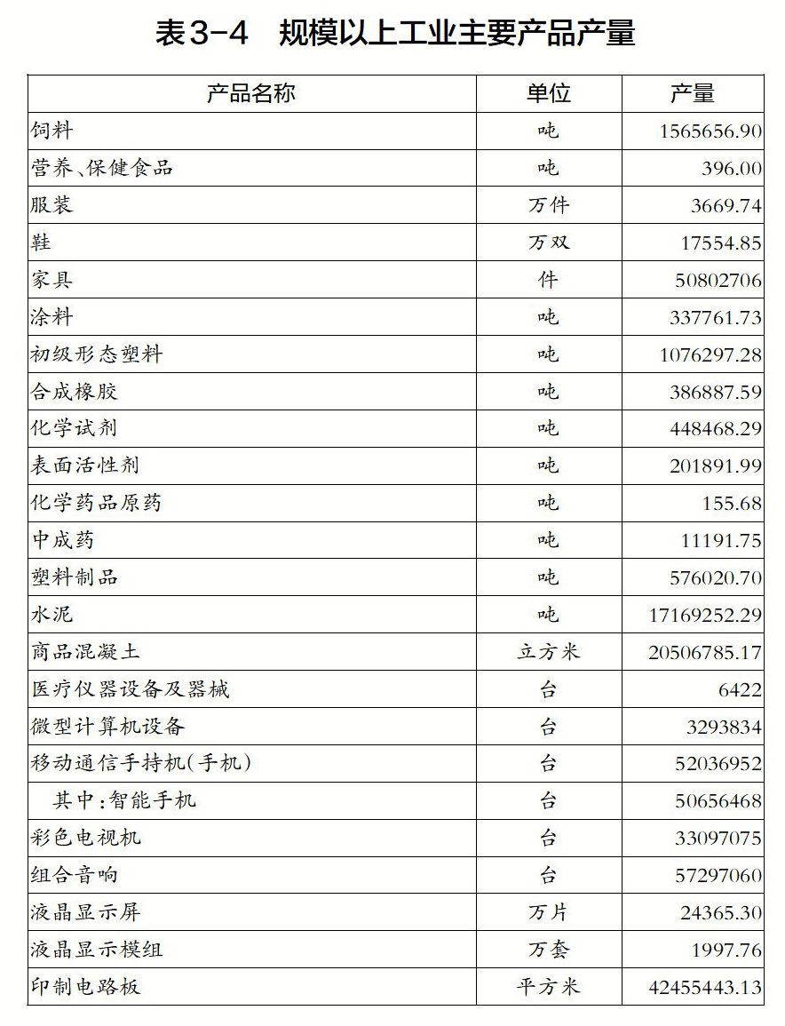 2023年,規(guī)模以上工業(yè)主要產(chǎn)品產(chǎn)量詳見(jiàn)表3-4。