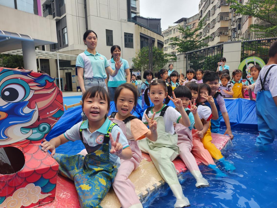 5月30日,惠州市機關(guān)第一幼兒園“拾趣端午·‘粽’情東坡”慶“六一”活動驚喜連連,巧妙地將端午民俗與東坡文化元素結(jié)合起來。孩子們身著漢服化身“文化小使者”,在“詩海尋粽”游戲中釣起詩詞粽子誦讀,于“一箭‘粽’情”中射識東坡名句。現(xiàn)場,親子共繪安康團扇、拼裝楚韻龍舟、縫制艾草香囊,共同參與“龍舟競渡大比拼”與“艾水驅(qū)邪”水槍游戲,體驗民俗文化魅力。
