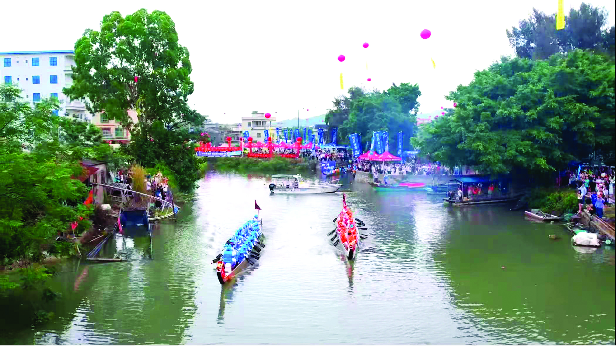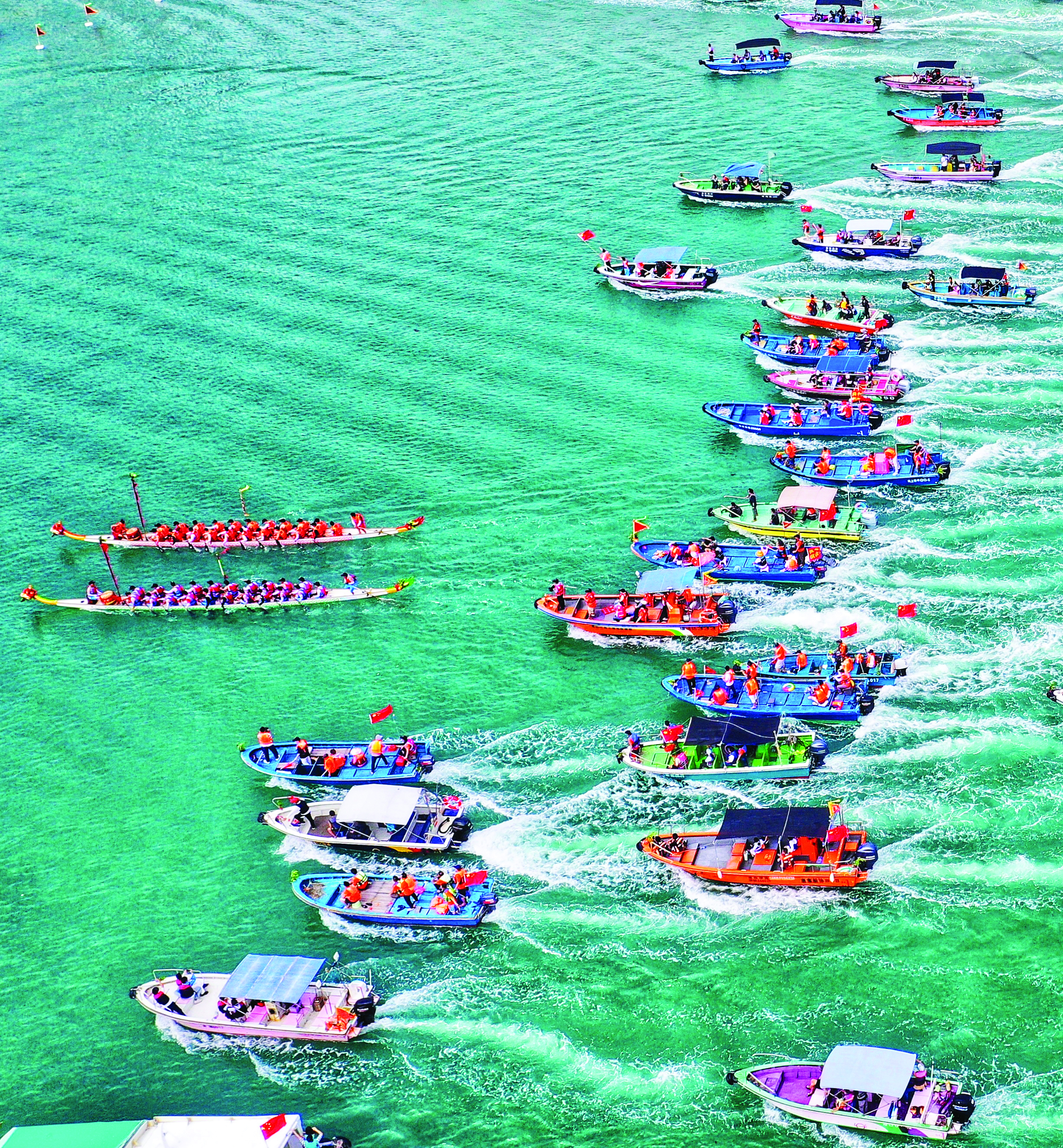 河道內(nèi)、翠湖里,你追我趕,鑼鼓聲、劃槳聲劈波逐浪,水面上演“速度與激情”;看臺(tái)上、河岸邊,人頭攢動(dòng),歡呼聲、吶喊聲此起彼伏,匯成一片歡樂(lè)海洋……