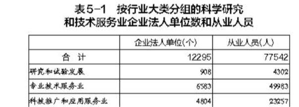 在科學(xué)研究和技術(shù)服務(wù)業(yè)企業(yè)法人單位從業(yè)人員中,內(nèi)資企業(yè)占97.7%,港澳臺投資企業(yè)占2.0%,外商投資企業(yè)占0.1%(詳見表5-2)。