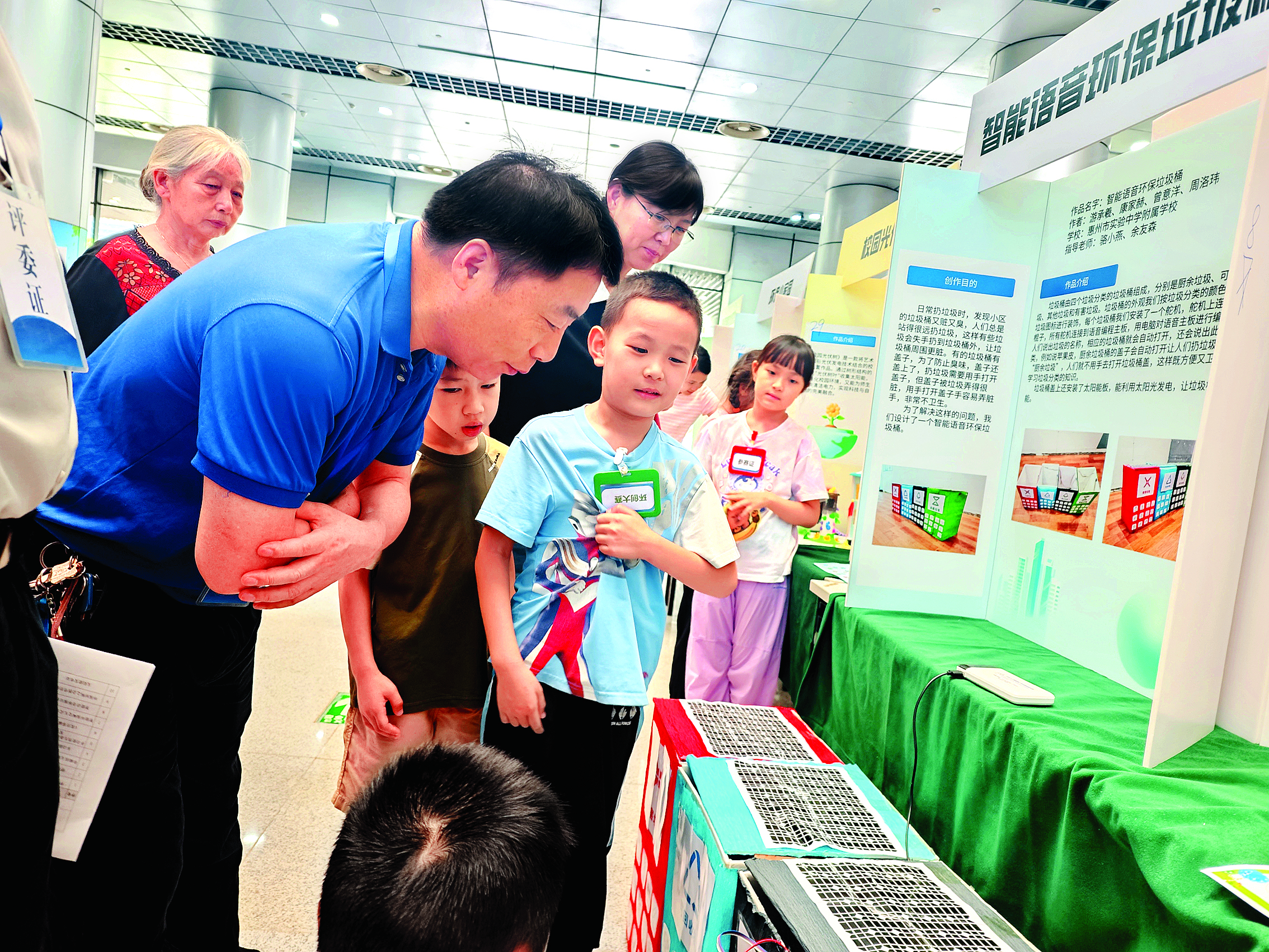 環(huán)保不僅是口號(hào),更是融入日常的科技實(shí)踐。在展評(píng)環(huán)節(jié),小選手們自信地講解創(chuàng)作理念,觀眾沉浸式體驗(yàn)科技魅力!耙郧拔抑恢酪厥绽,通過(guò)設(shè)計(jì)減少浪費(fèi)的比賽裝置,我明白了環(huán)保需要全方位行動(dòng):既要注重物品質(zhì)量、節(jié)省資源,更要警惕那些看不見(jiàn)的環(huán)境污染!眮(lái)自惠州市南壇小學(xué)的8歲參賽者沈鎂斯說(shuō)。