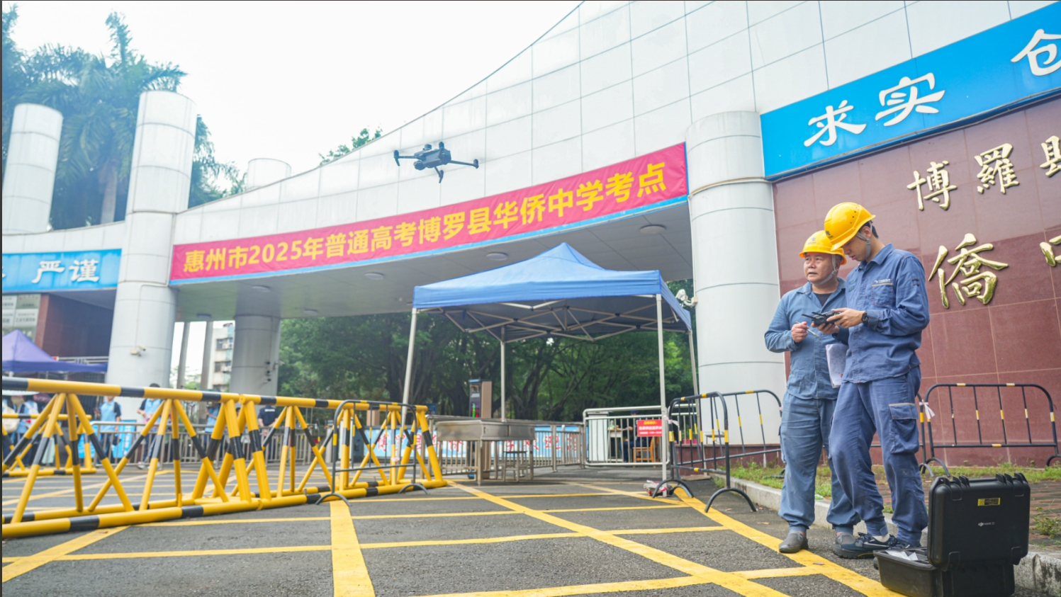 惠州供電局運(yùn)維人員在巡視高考考點(diǎn)線路。