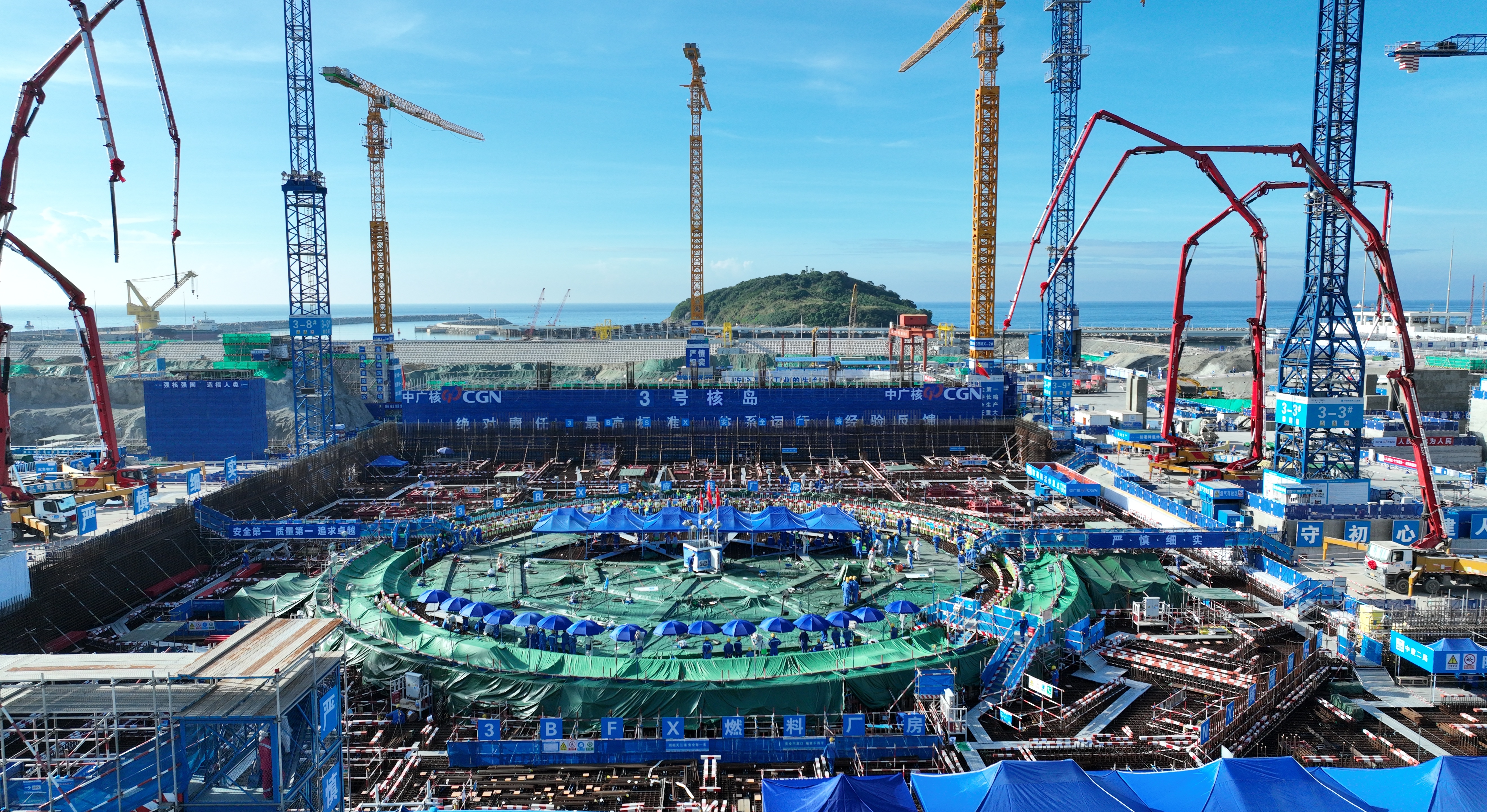 6月10日上午,中廣核廣東太平嶺核電廠3號機組核島第一罐混凝土開始澆筑;葜萑請笥浾唿S鑫威 謝寶樹 攝