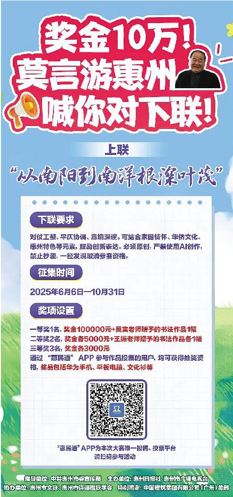 “莫言游惠州喊你對(duì)下聯(lián)”征集活動(dòng)已收稿超3000條