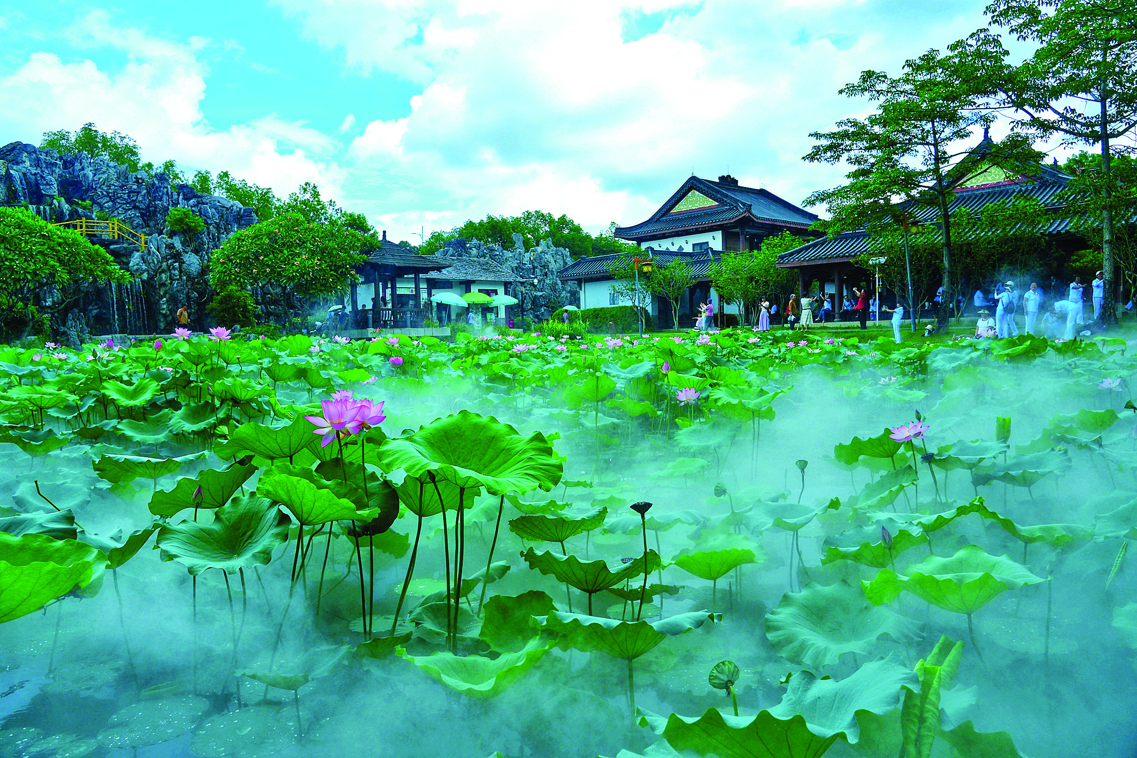 當(dāng)輕紗般的霧靄邂逅滿池荷花,會(huì)碰撞出怎樣的詩意畫卷?近日,惠州西湖豐渚園給出了答案——荷花池畔人工霧景初綻芳容,裊裊霧氣升騰彌漫,勾勒出一幅靈動(dòng)的水墨丹青。氤氳霧氣中,荷花若隱若現(xiàn),碧綠荷葉在霧氣的縈繞間仿若浮于云端。清風(fēng)拂過,霧浪翻涌,荷花搖曳生姿,翩翩起舞,引得市民游客駐足沉醉。