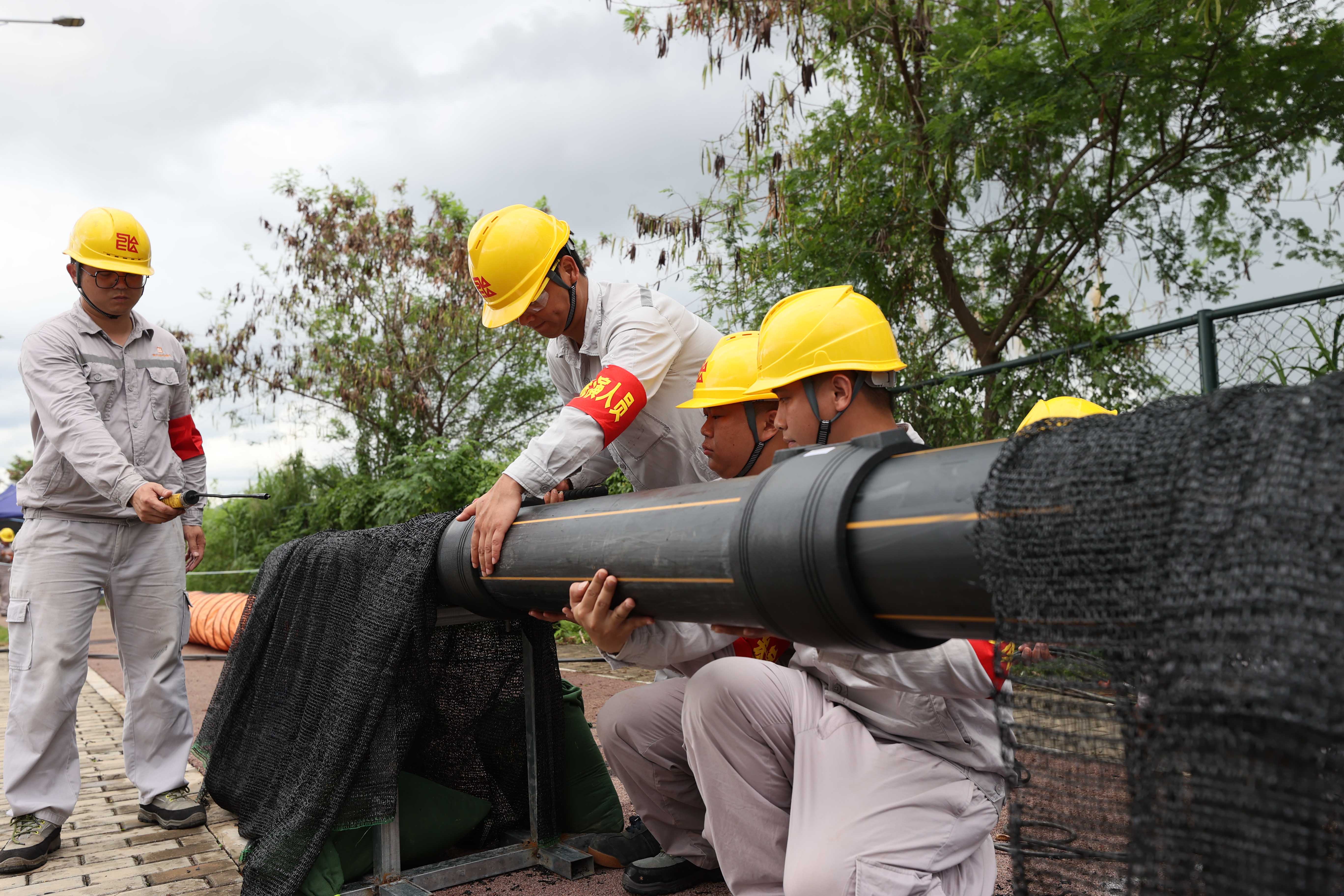 演練模擬第三方施工單位操作挖掘機(jī)不慎挖破DE315燃?xì)庵鞲晒埽瑢?dǎo)致燃?xì)獯罅啃孤。事件預(yù)計(jì)造成8000余戶居民及10余戶工商業(yè)用戶供氣中斷48小時(shí)以上,達(dá)到惠州市城鎮(zhèn)燃?xì)馔话l(fā)事件Ⅳ級(jí)響應(yīng)標(biāo)準(zhǔn)。