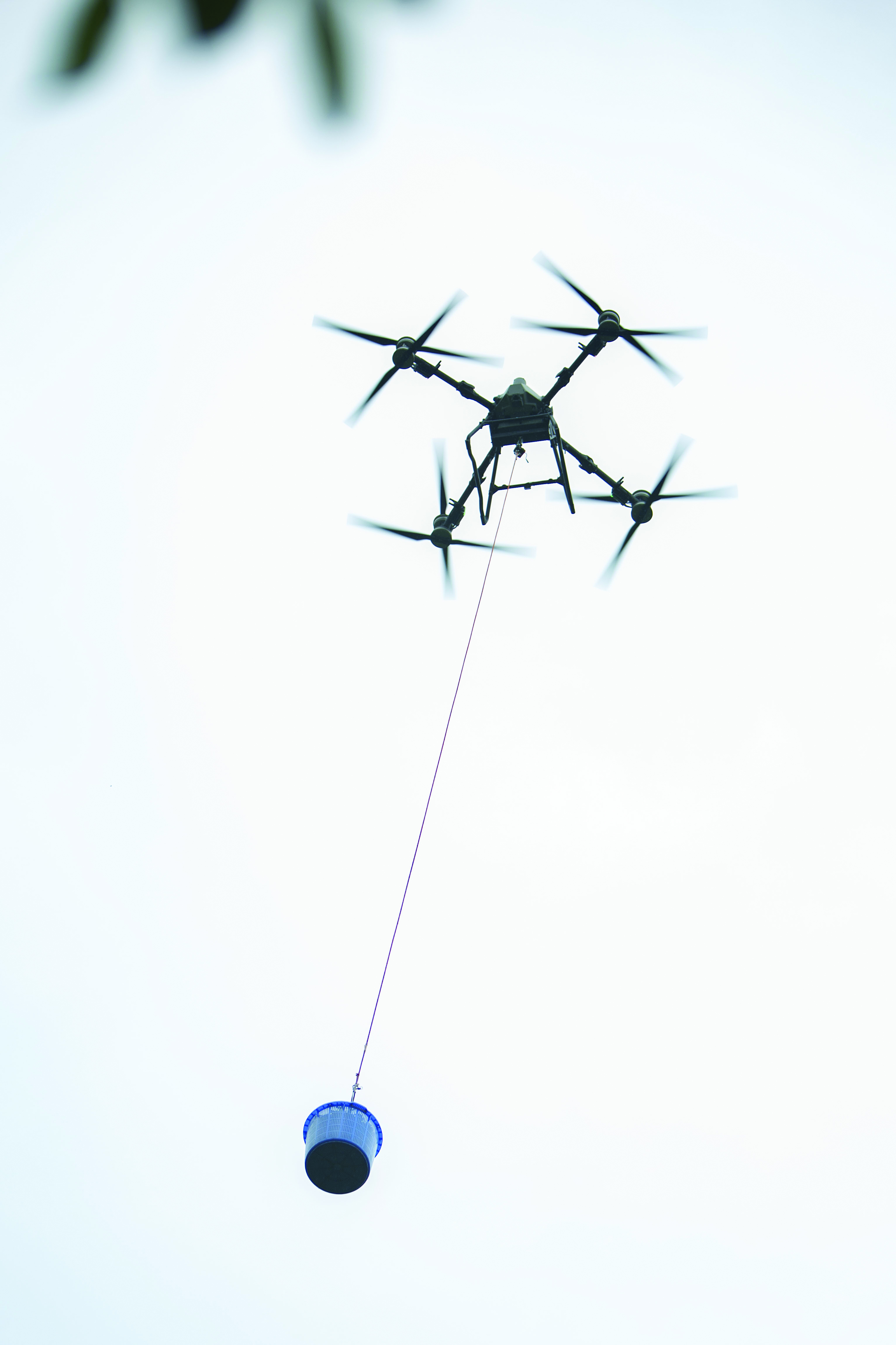農(nóng)用無人機(jī)吊運(yùn)荔枝。 惠州日?qǐng)?bào)記者劉豪偉 攝