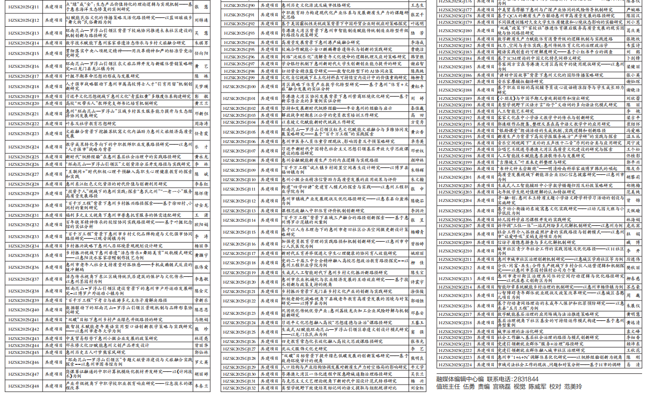 附件:2025年度惠州市哲學(xué)社會(huì)科學(xué)規(guī)劃項(xiàng)目立項(xiàng)名單