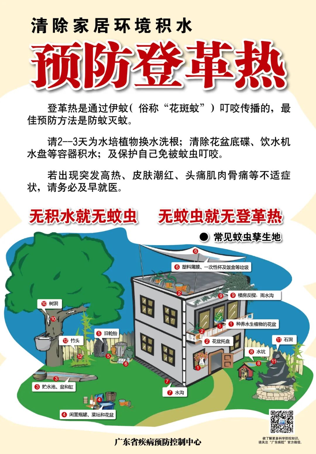 康敏建議,當前廣東省已進入登革熱等蚊媒傳染病的流行季節(jié),佛山市報告基孔肯雅熱疫情,市民日常應注意時常翻盆倒罐,清理積水,清除雜物,清潔環(huán)境,消除蚊蟲孳生環(huán)境;同時做好個人和居家防蚊措施,避免伊蚊叮咬,預防蚊媒傳播疾病。如出現(xiàn)發(fā)熱、皮疹、肌肉骨骼關節(jié)痛等癥狀應及時就診,并主動向醫(yī)生提供旅居史和蚊蟲叮咬史。當所在小區(qū)或社區(qū)發(fā)生登革熱或基孔肯雅熱病例時,市民應配合防疫工作人員清理室內(nèi)孳生地和殺滅成蚊。
