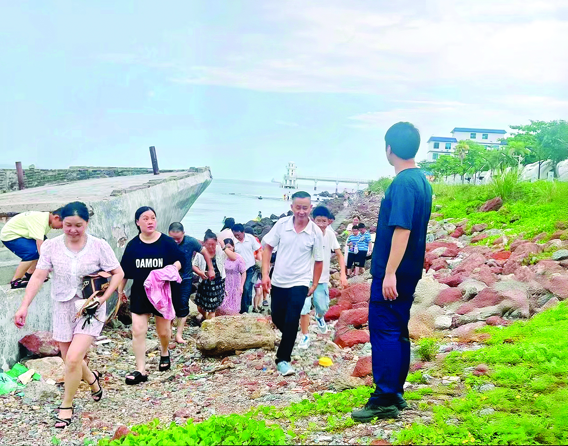 7月19日,大亞灣霞涌街道工作人員對水庫河道、海邊灘涂沙灘等進行排查和人員勸離,全力消除安全隱患;葜萑請笥浾呖锵娑 通訊員丁玉林 攝