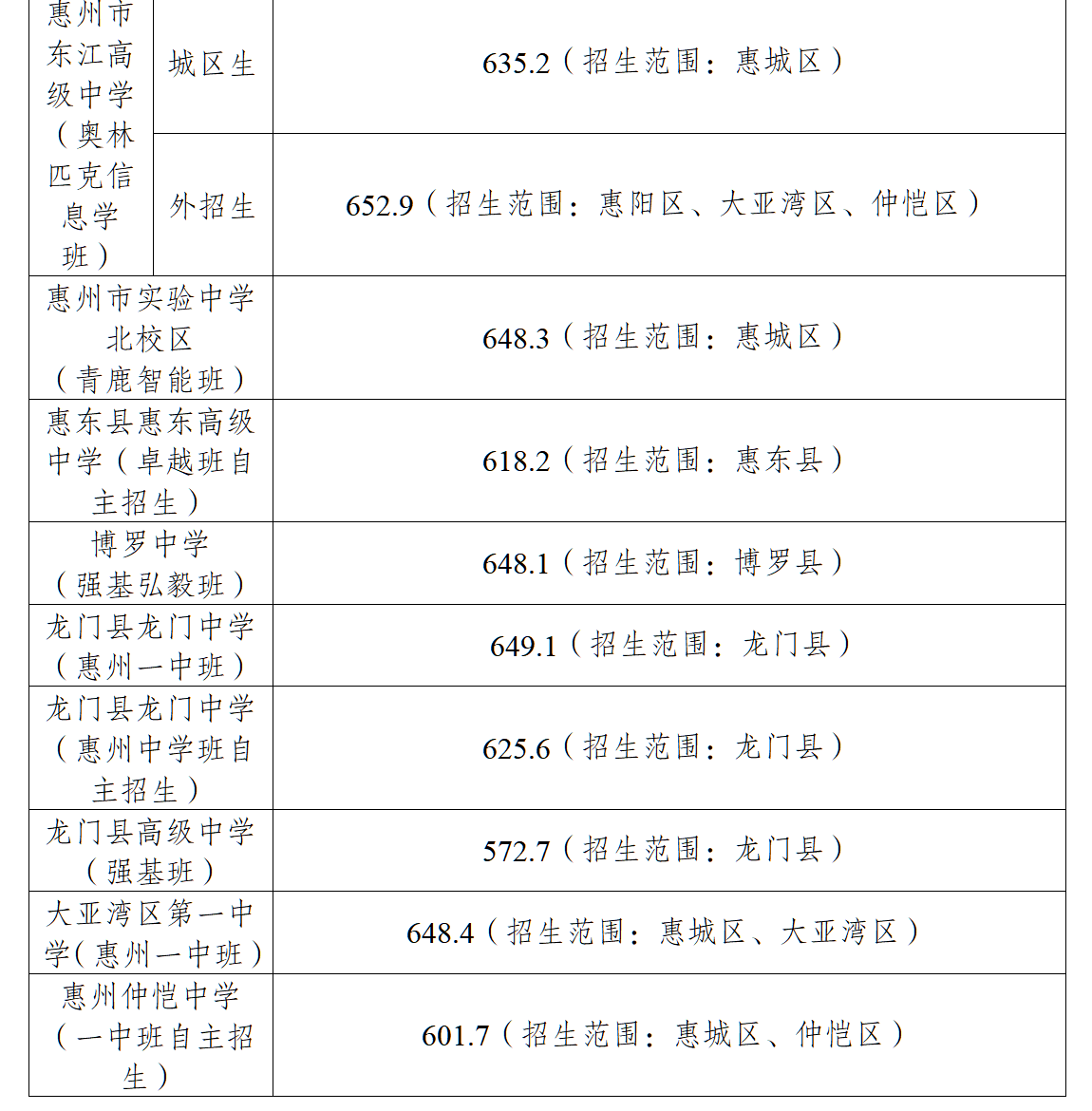 惠州中學(xué)惠城區(qū)錄取分?jǐn)?shù)線656.6分