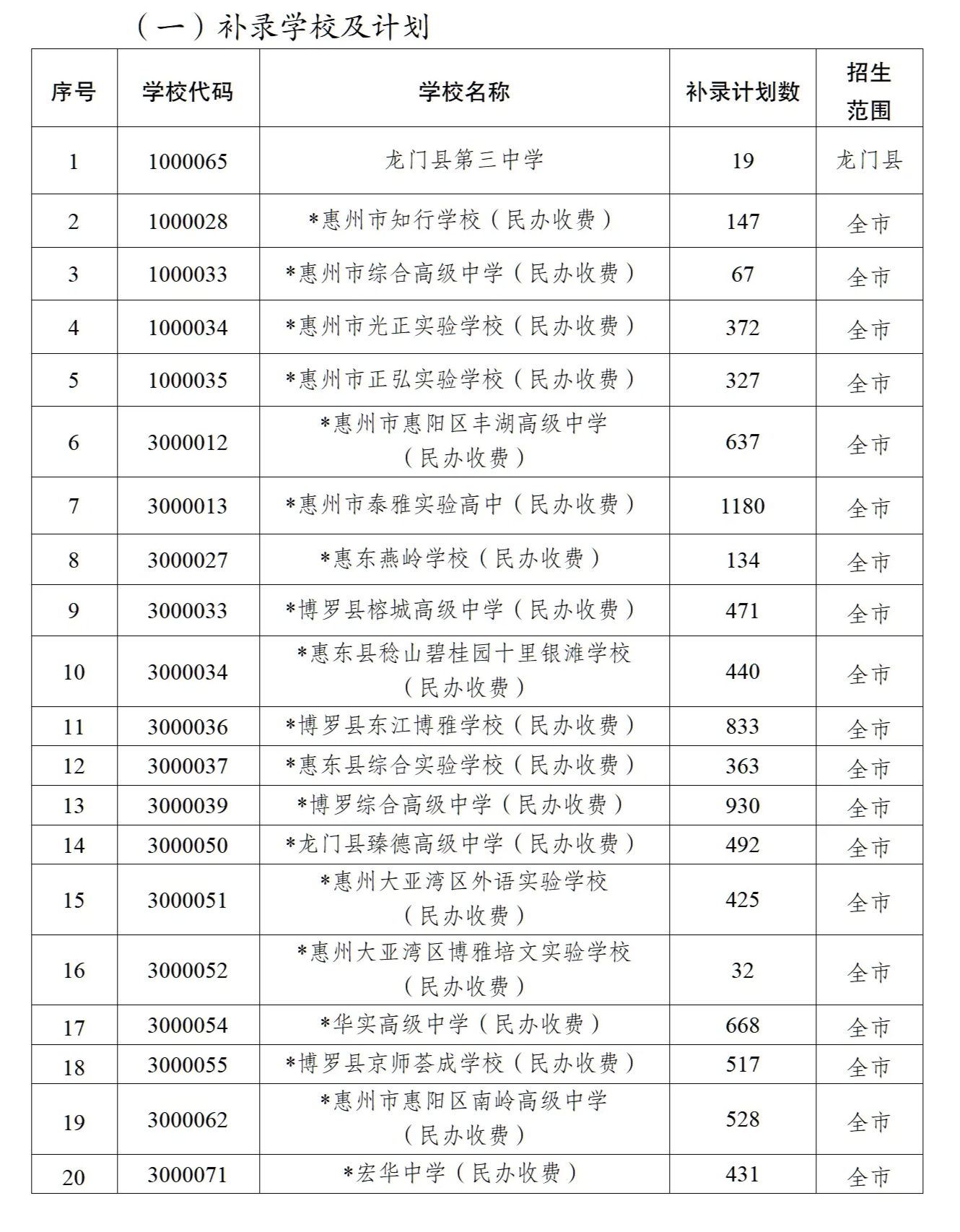 根據(jù)全市普通高中學(xué)校第一階段錄取結(jié)果,20所學(xué)校尚余招生指標(biāo),除了龍門縣第三中學(xué)只面向龍門考生補(bǔ)錄外,其他19所學(xué)校的補(bǔ)錄對象為在我市參加2025年中考的考生,如考生(普通生及特長生)在普通高中各批次中均未被我市普通高中學(xué)校錄取,且中考成績在395分及以上,即可參加補(bǔ)錄。符合補(bǔ)錄條件且自愿選擇參加補(bǔ)錄的考生須按流程填報補(bǔ)錄志愿,符合補(bǔ)錄條件但未填補(bǔ)錄志愿的考生不能參加補(bǔ)錄。