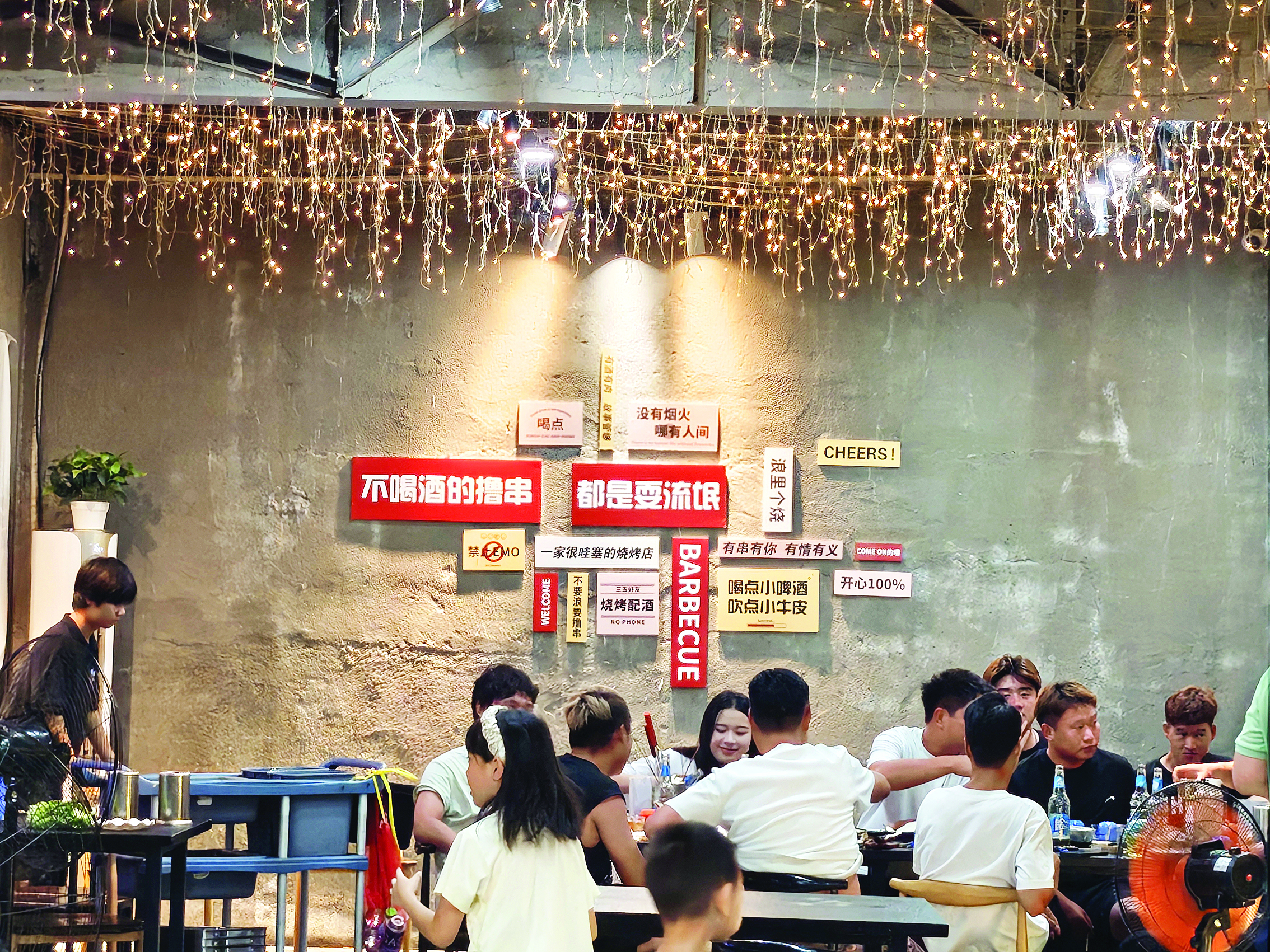 記者實(shí)地探訪發(fā)現(xiàn),打造“美食+美景”場(chǎng)景化消費(fèi)已成為餐飲新趨勢(shì)。在市區(qū)河南岸一家燒烤店,直徑2米的3D月球燈、掛滿屋頂?shù)男⌒切菬、文藝范?biāo)語(yǔ)墻等精心設(shè)計(jì)的打卡點(diǎn)格外醒目。“年輕人熱衷社交分享,我們定期更新場(chǎng)景布置,既滿足他們的情感需求,又能讓我們的店得到宣傳。”店主王闖道出經(jīng)營(yíng)心得。