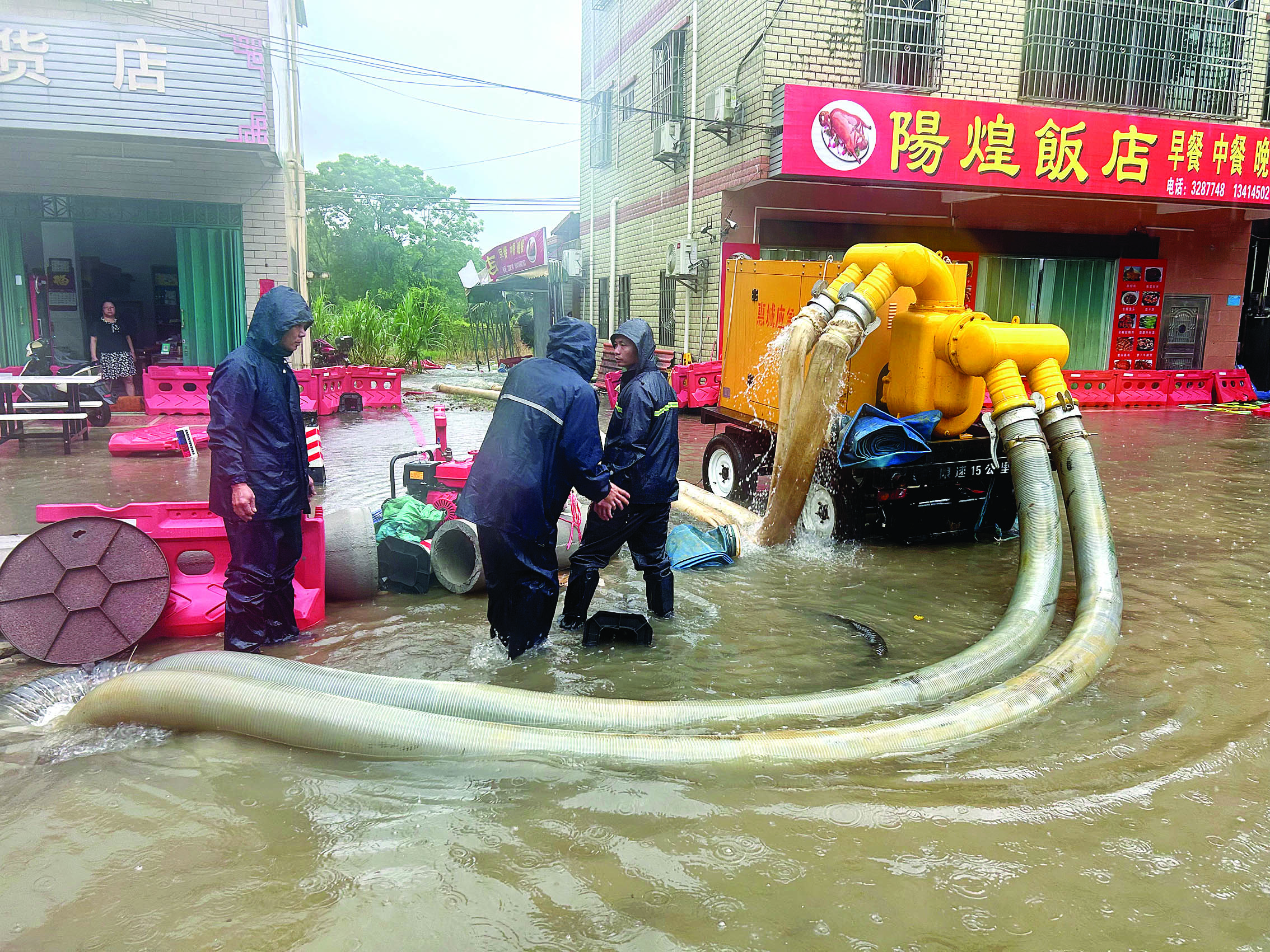 蘆洲鎮(zhèn)工作人員抽排澇點積水。惠州日報記者彭紅霞 特約通訊員廖詠琳 攝