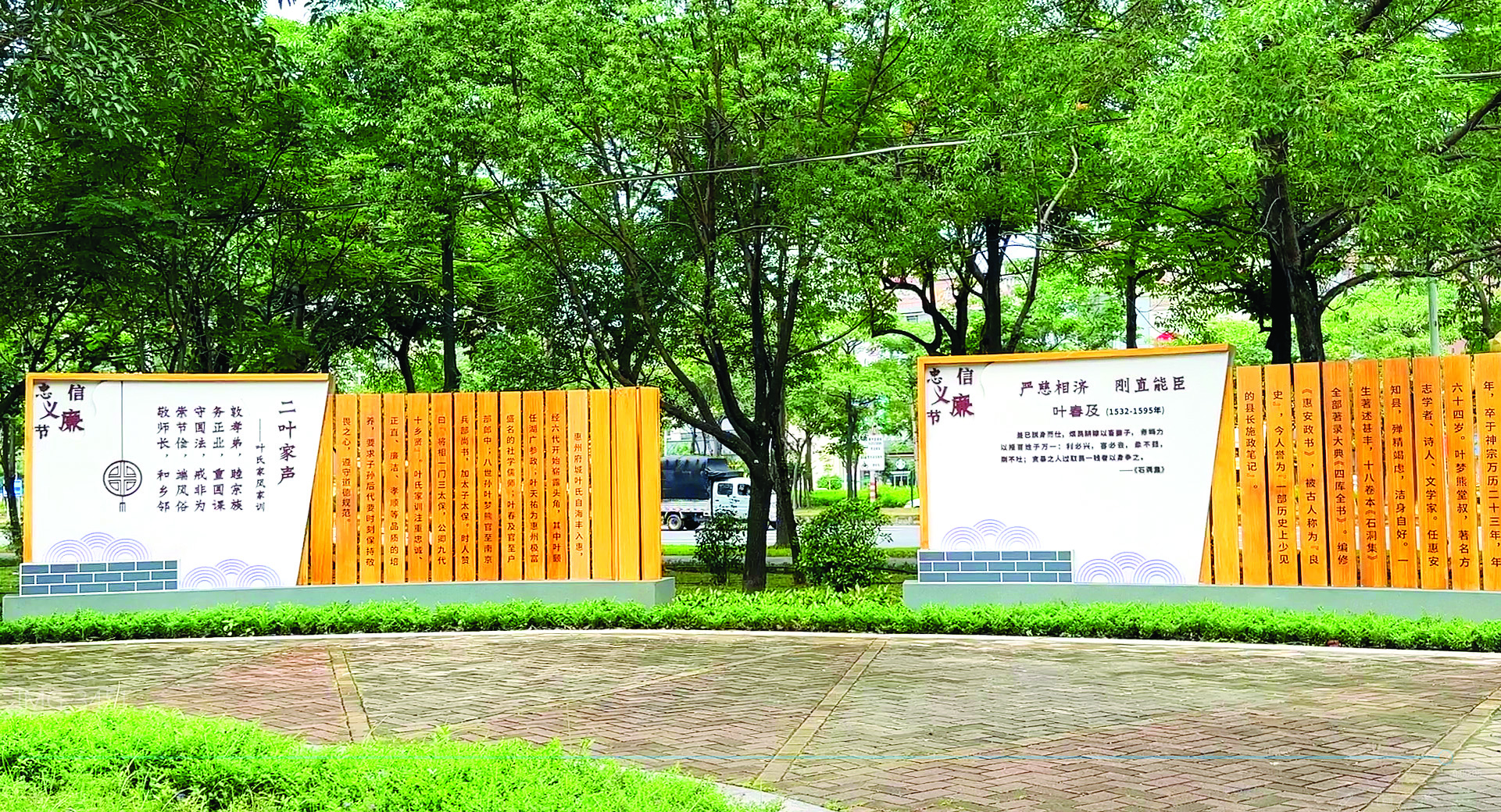 惠城區(qū)新時代廉潔文化公園中關于歷史人物“二葉”及葉氏家訓介紹。