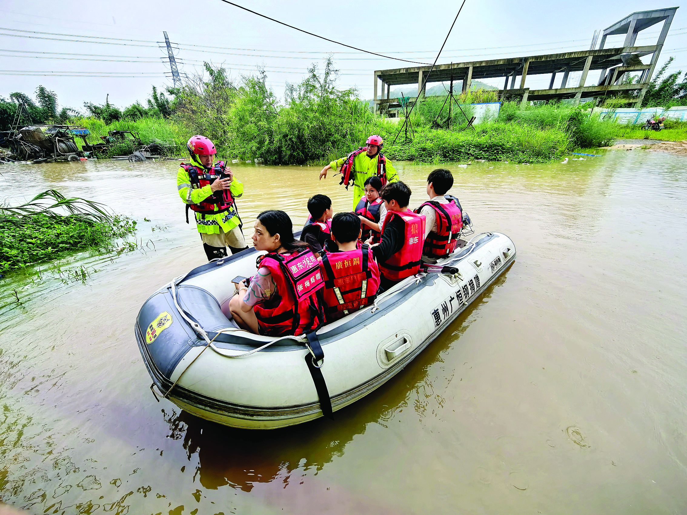 在惠東平山街道黃排桃源居,消防人員救出受困群眾。 惠州消防供圖