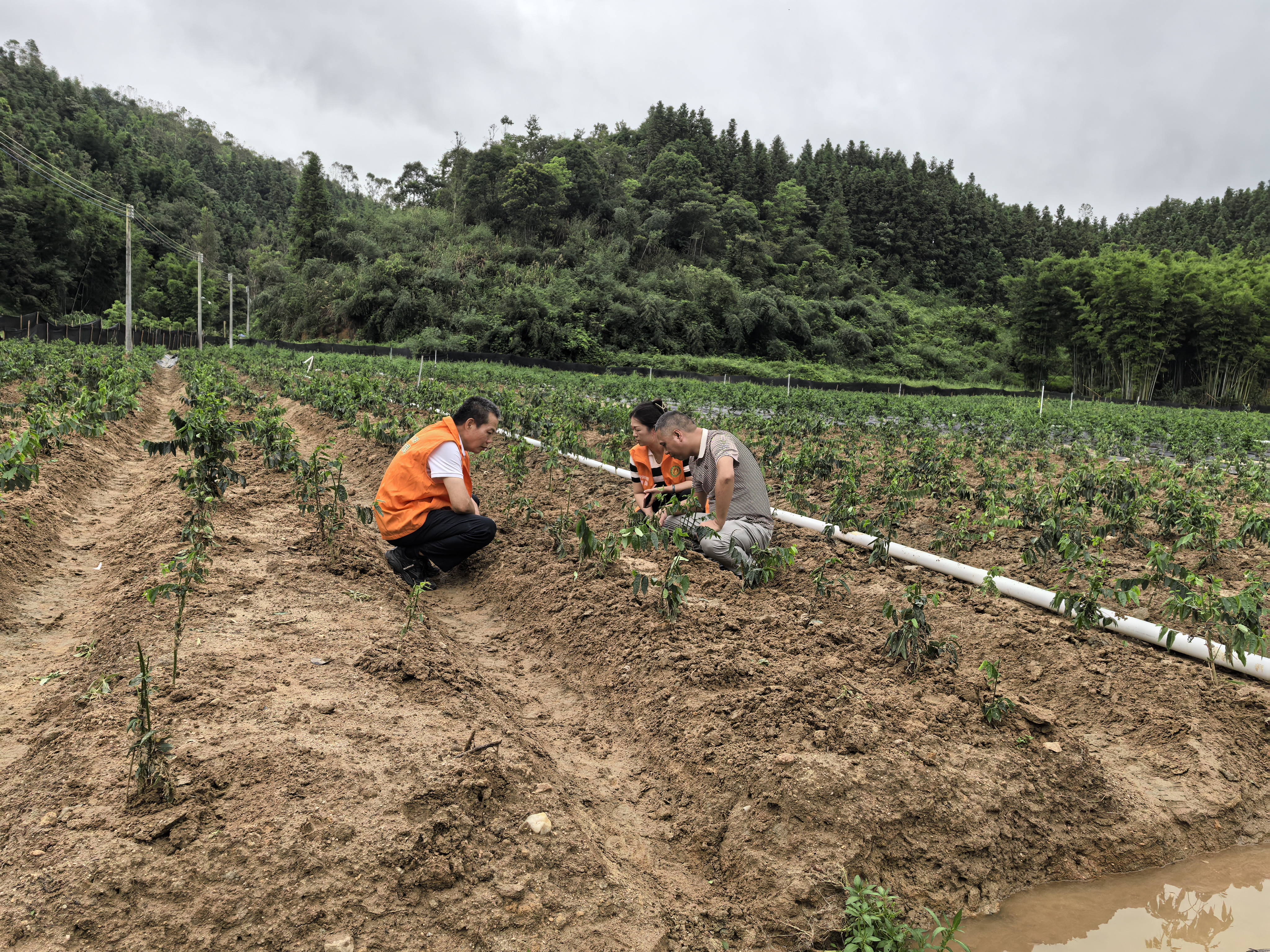 農(nóng)技專家團隊實地查看作物受災(zāi)情況,并提供精準(zhǔn)技術(shù)指導(dǎo)。