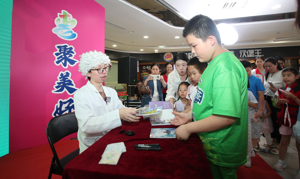 8月18日晚,米吳團隊做客南國書香節(jié)惠州書展,與孩子們互動游戲,并簽售新書。