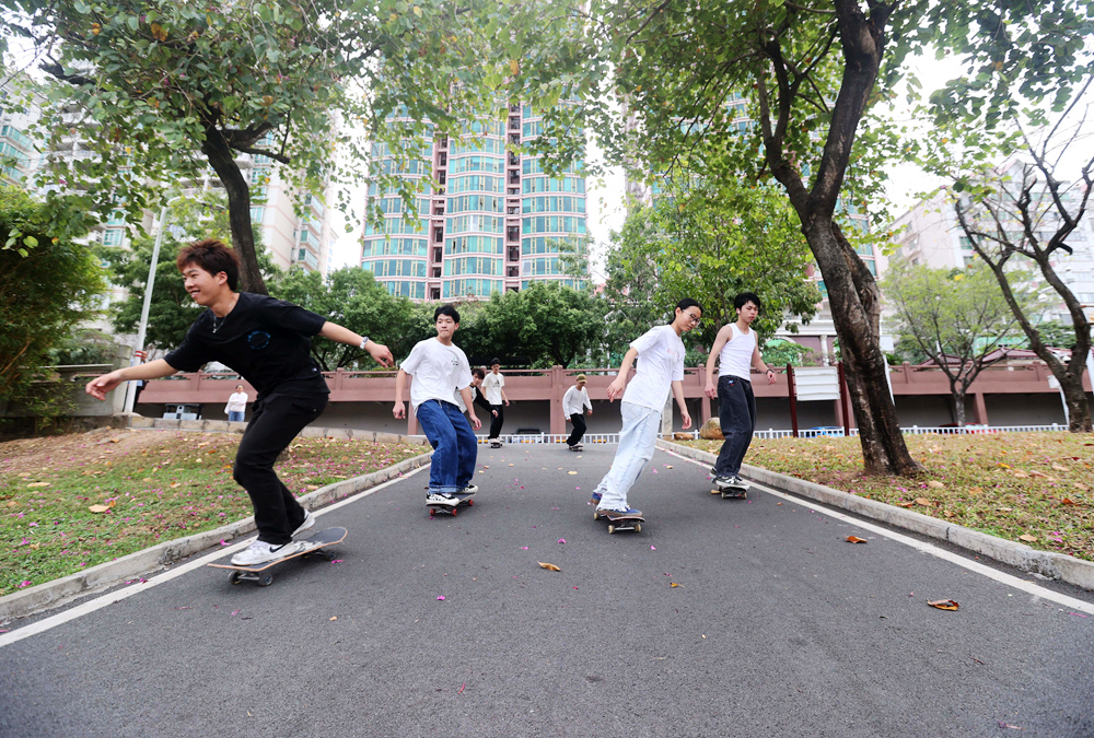 享受自由滑行帶來的體育樂趣;輬笕襟w記者楊建業(yè) 攝
