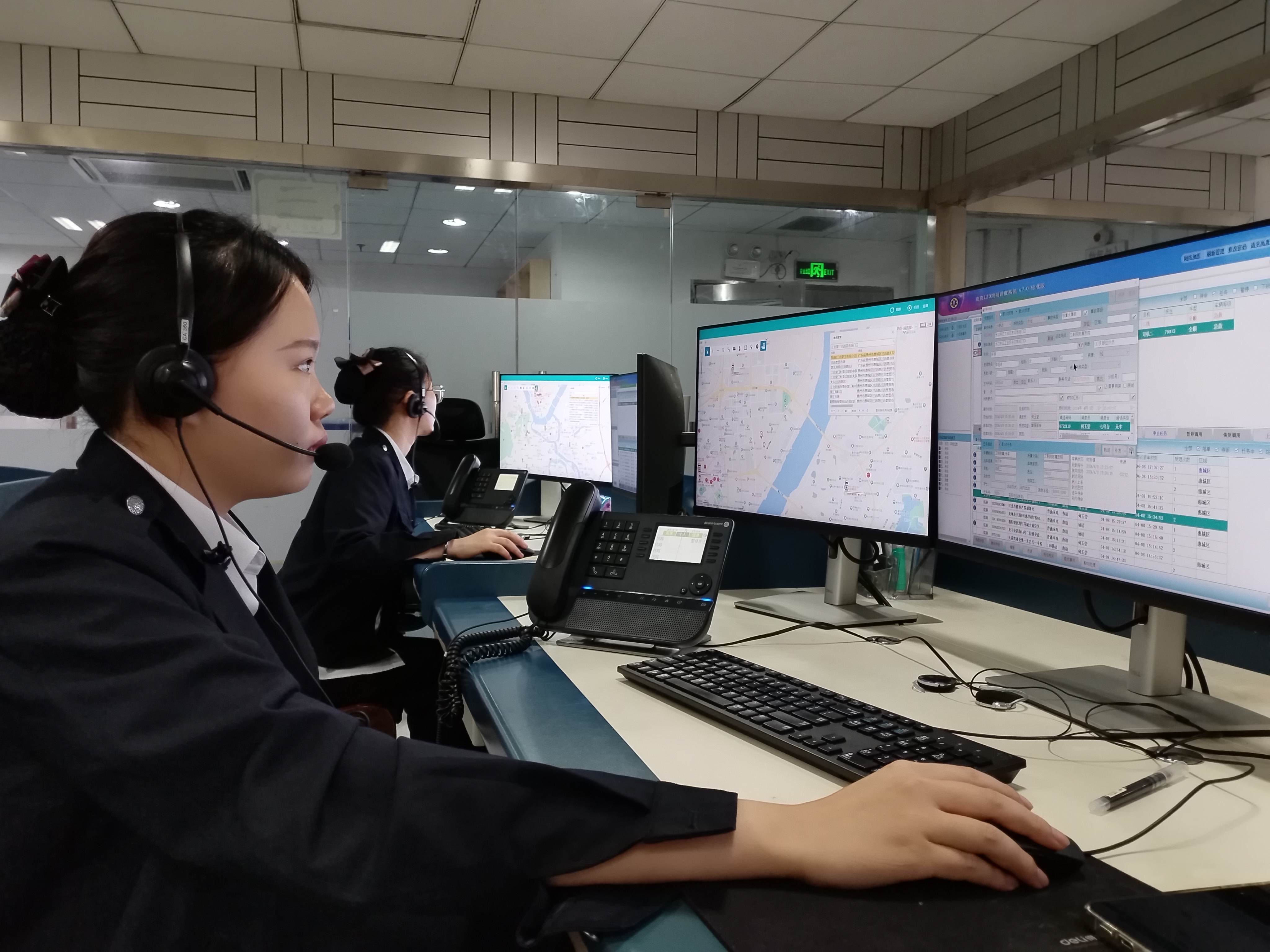 調(diào)度員何玉瑩在接聽市民來電;葜萑請笥浾咧苤锹 攝