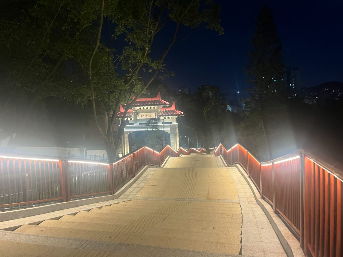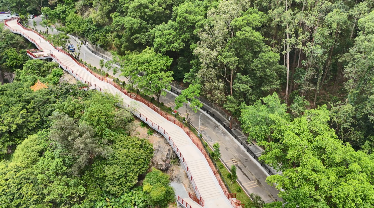 值得一提的是,東門棧橋呈現(xiàn)兩大亮點。觀景休閑更舒適:棧橋視野開闊,專門設置1處專用觀景平臺及多處休息平臺,市民游客上下山途中可隨時駐足觀賞山林景色,同時緩解登山疲勞,尤其適合親子、老年群體使用;登山出行更輕松:棧橋主道梯段坡度平緩,大幅降低登山體力消耗,讓市民登山休閑的過程更輕松、更安全。