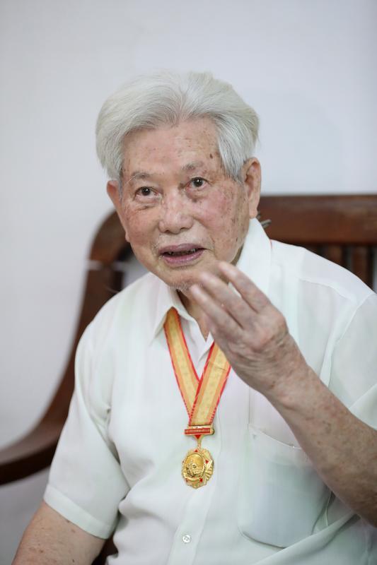 他白發(fā)蒼蒼,步履蹣跚,但腰桿依舊挺得筆直,說(shuō)起話來(lái)中氣十足。回憶抗戰(zhàn)烽火歲月,老人激動(dòng)地說(shuō),“當(dāng)年面對(duì)強(qiáng)敵,游擊隊(duì)沒(méi)有后退一步,很多戰(zhàn)友犧牲了,我只是一個(gè)幸存者。我們都應(yīng)該珍惜今天的和平!