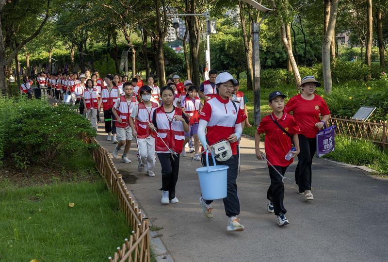 “每天早晨,陽光灑在志愿者馬甲上,我牽著媽媽的手來撿跑,感覺自己像個(gè)守護(hù)城市的小衛(wèi)士!8歲的小霖婕在作文中這樣寫道。當(dāng)家長(zhǎng)帶著孩子來到新時(shí)代文明實(shí)踐活動(dòng)的點(diǎn)位后,便有專業(yè)的志愿者在等候了。從工具分發(fā)、交通安全提醒,到環(huán)保知識(shí)講解、實(shí)踐禮儀引導(dǎo),全程提供細(xì)致指導(dǎo)。如:金山湖志愿服務(wù)隊(duì)“愛心寶媽團(tuán)”更細(xì)化保障至“過馬路避讓”“彎腰防磕碰”等細(xì)節(jié),有效消除安全隱患,讓家長(zhǎng)成為孩子公益路上的“第一引導(dǎo)人”。