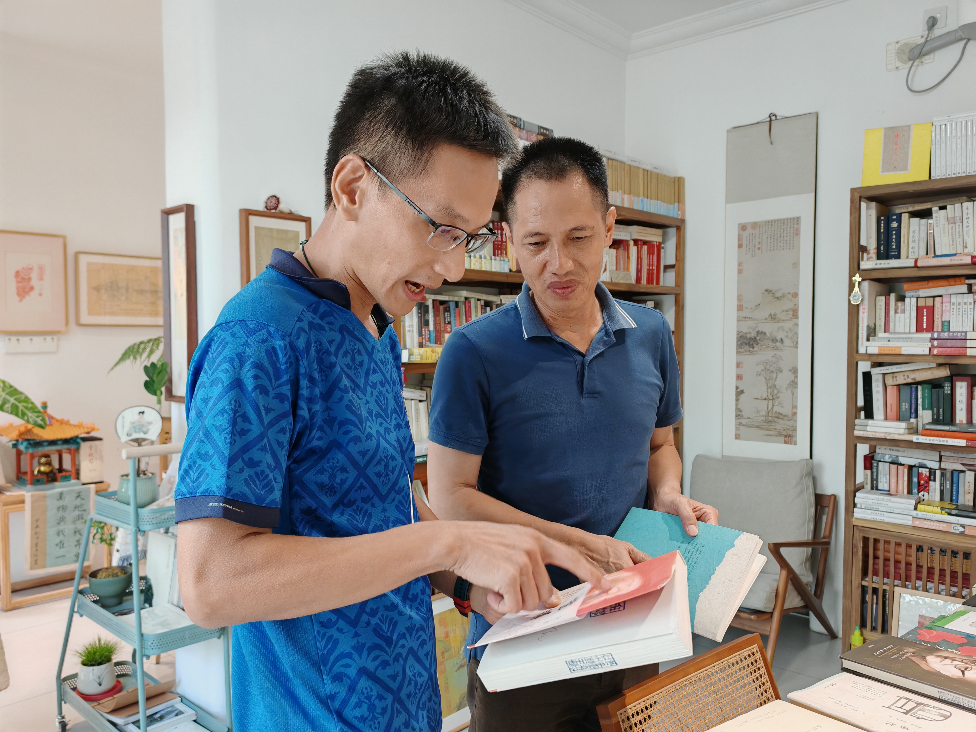 作為惠陽區(qū)新圩鎮(zhèn)人,曾振業(yè)自幼受當(dāng)?shù)乜图覈埼菸幕妊眨改敢彩种匾暭绎L(fēng)傳承。五六年前,他就萌生了創(chuàng)辦傳統(tǒng)文化主題公益圖書館的想法!凹热贿x擇了這條路,就不能半途而廢!苯鼉赡,他潛心研習(xí)琴棋書畫,為辦館做準(zhǔn)備。經(jīng)過一年多尋覓,最終在惠州西湖長壽路邊找到理想場所,將老家的茶室風(fēng)格“搬”了進來。他還計劃租下二樓,拓展公益藝術(shù)陳列、傳統(tǒng)文化體驗和藝術(shù)交流空間,打造更綜合的公益文化平臺。
