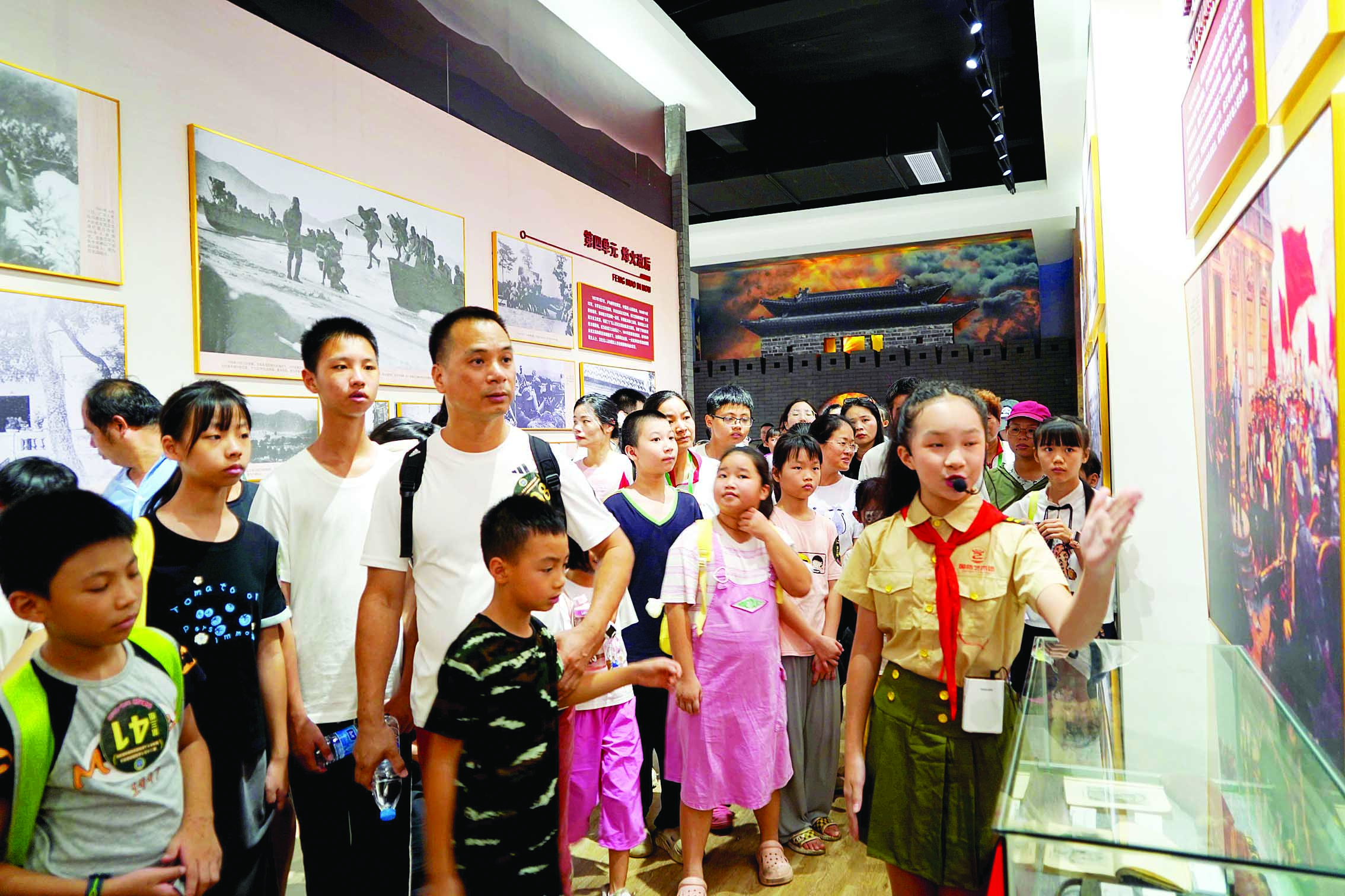國旗冉冉升起,國歌聲響徹云霄;模擬手榴彈投擲區(qū)排起長龍,孩子們躍躍欲試;國防教育展覽廳內(nèi),小小講解員聲情并茂地講述英雄故事……