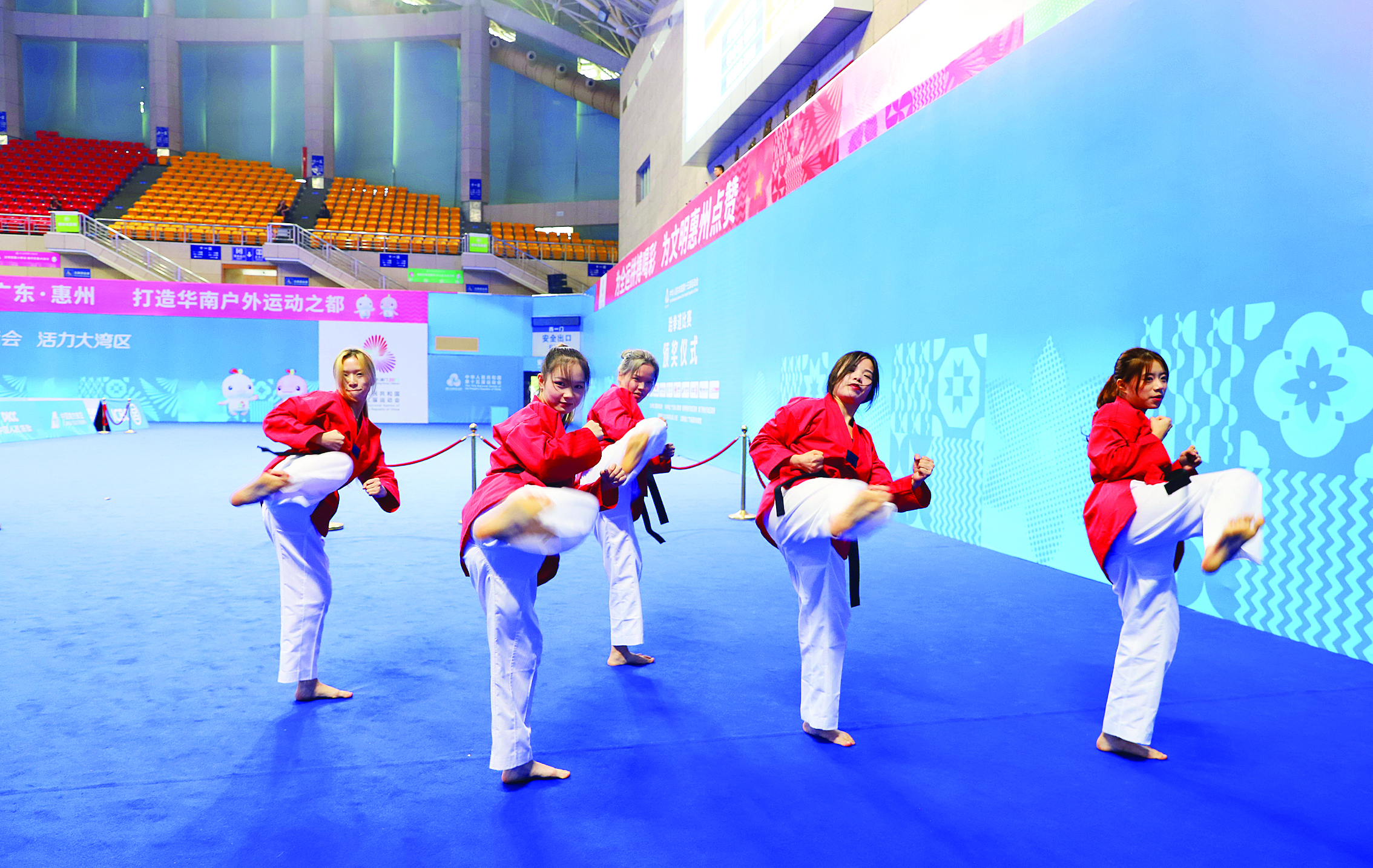 9月25日,惠州體育館十五運(yùn)會跆拳道比賽聯(lián)排現(xiàn)場,體育展演在緊張排練。