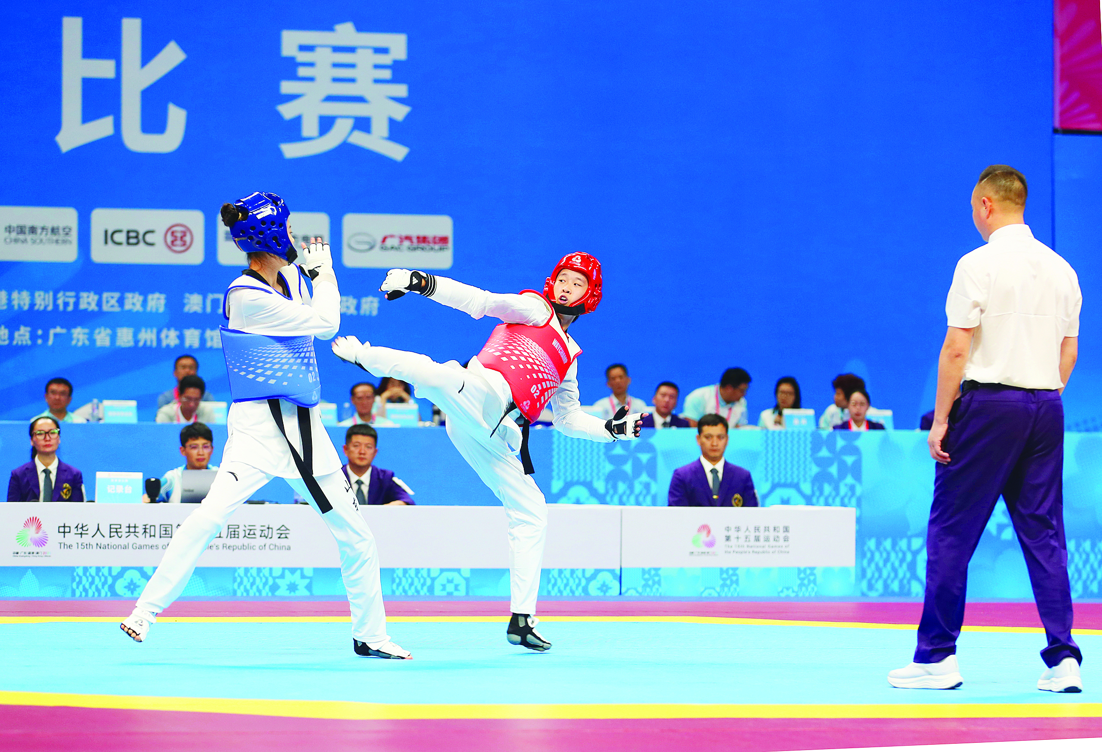 9月26日,第十五屆全國運(yùn)動(dòng)會(huì)(以下簡稱“十五運(yùn)會(huì)”)跆拳道比賽在惠州體育館正式拉開帷幕。未來4天內(nèi),來自全國33支隊(duì)伍的134名運(yùn)動(dòng)員將在此展開激烈角逐,爭奪8枚金牌。