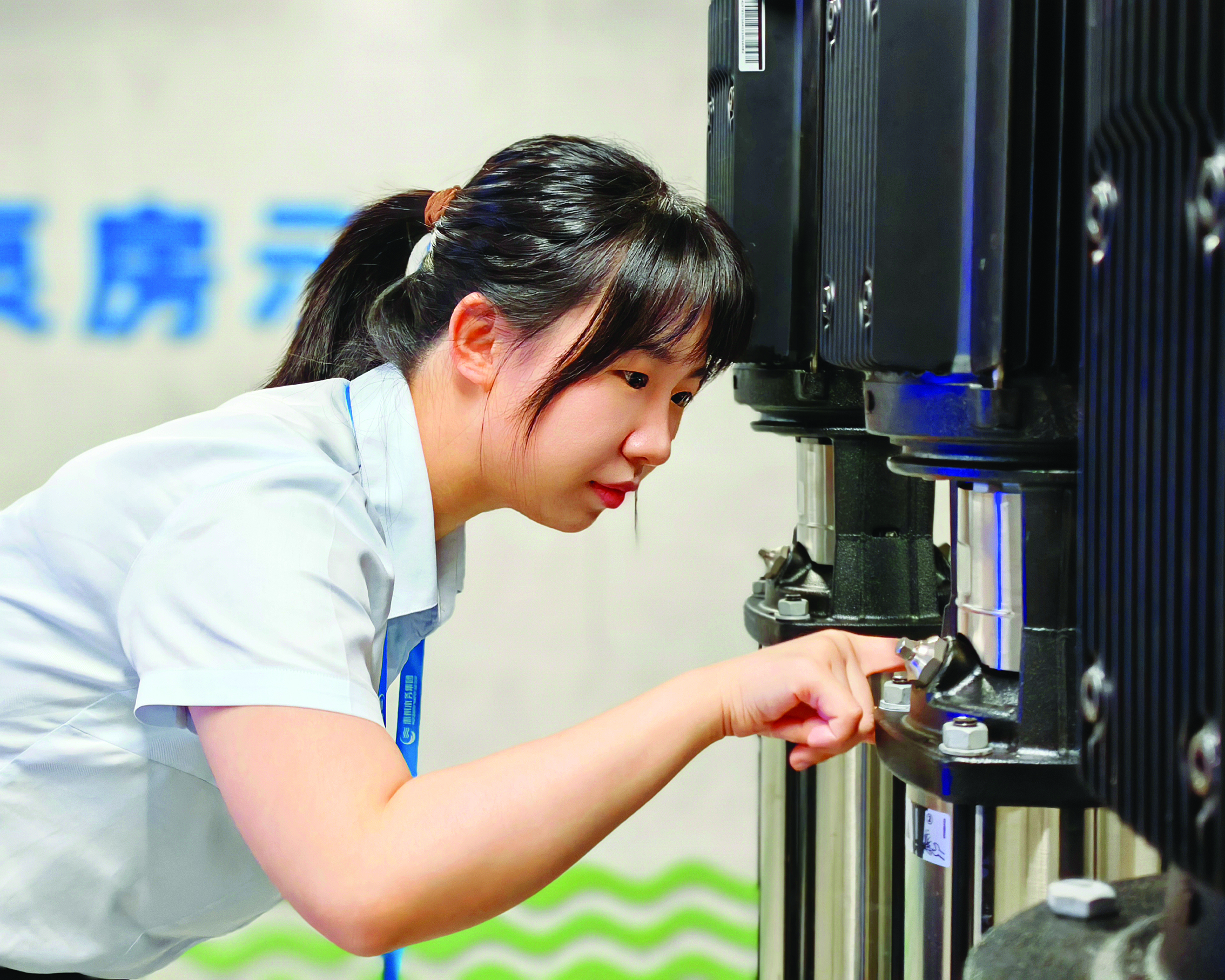 近來,在仲愷高新區(qū)的建筑工地間,總能看到石瑋霖忙碌的身影。作為二次供水審驗(yàn)技術(shù)員,她的“戰(zhàn)場(chǎng)”在泵房與管道之間,使命是讓千家萬戶水龍頭穩(wěn)定涌出清泉。