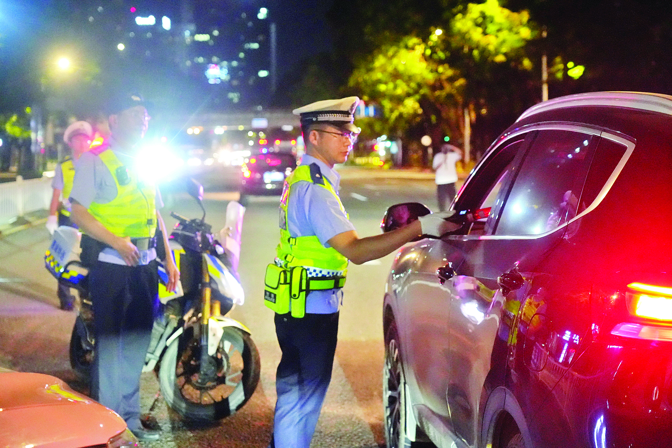 “先生,麻煩你停車接受檢查!薄澳愫,騎電動(dòng)車要規(guī)范佩戴安全頭盔!薄袆(dòng)中,針對(duì)警情案件多發(fā)、治安復(fù)雜的區(qū)域、路段,惠州公安共設(shè)立綜合查緝、巡查管控、交通整治等卡點(diǎn)124處,消除交通安全與社會(huì)治安隱患,全力營造安全、暢通、有序的公共環(huán)境。