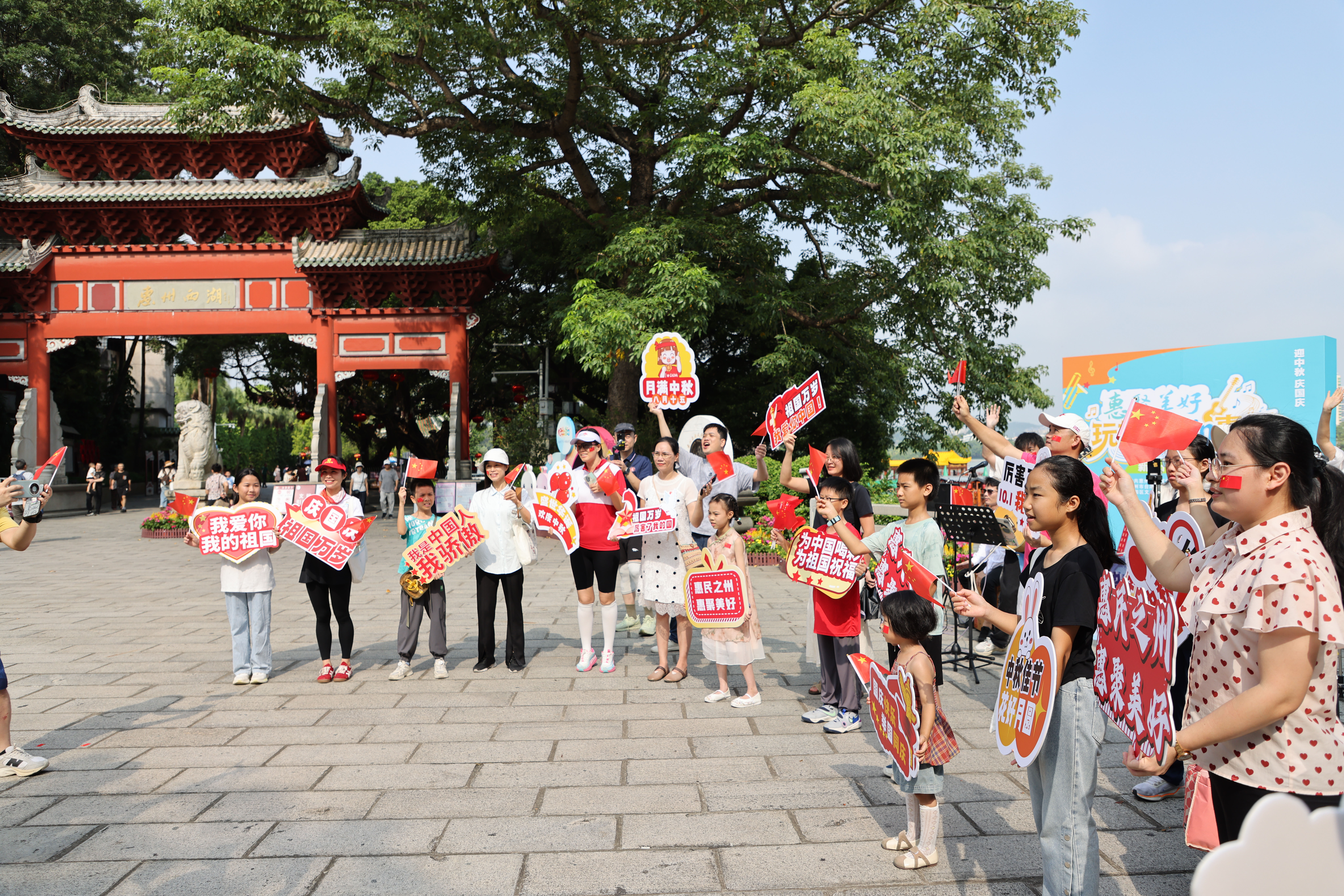 “我愛你中國。”“祝祖國生日快樂!”在吉他優(yōu)美弦樂中,參與快閃活動的市民游客還通過惠州日報視頻號直播鏡頭,向全國觀眾朋友大聲喊出節(jié)日問候,傳遞祝福,將活動氣氛推向高潮。