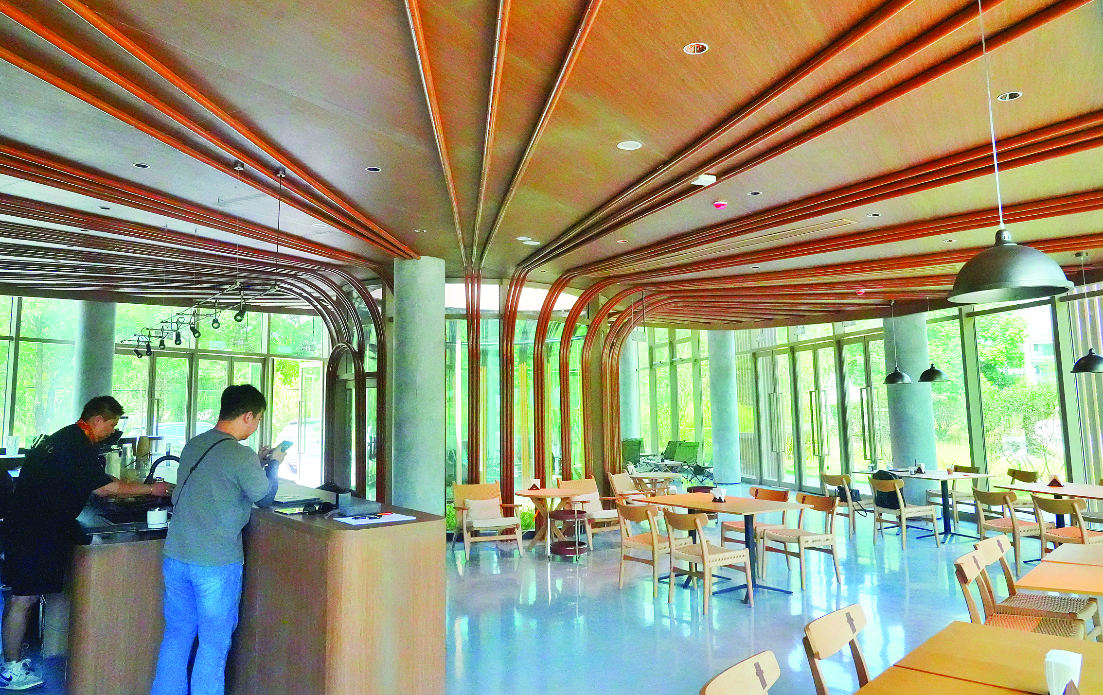 10月2日上午,羅浮山下的下浪溪驛站內(nèi),人流如織。下浪大幕藝術(shù)裝置輕盈的懸挑天幕覆蓋溪岸,孩子們?cè)谙厬蛩慰妥凇板憧Х认鄙,雙腳浸入清涼溪流,手中捧著香氣四溢的咖啡,不時(shí)傳來(lái)陣陣笑語(yǔ)!耙贿吅瓤Х,一邊把腳泡在溪水里,身心都清涼了,這種感覺(jué)太治愈了!”來(lái)自深圳的游客翟女士興奮地說(shuō)。