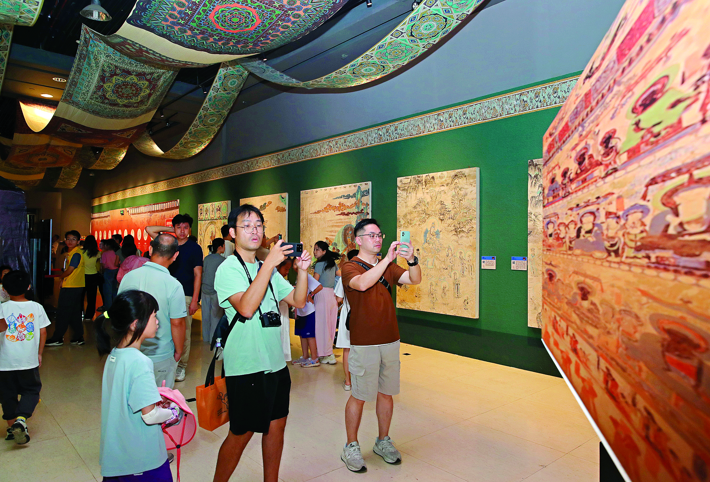 “我們是沖著敦煌藝術(shù)展來的,一下城軌就直奔這兒了!敝芘恳患襾碜哉貞c,早在暑假,就聽說惠州市博物館正在舉辦敦煌藝術(shù)展,之前一直沒空,現(xiàn)在終于抽出時(shí)間過來了!拔覀円患覍χ袊鴼v史文化都非常感興趣,孩子長大了甚至還想當(dāng)考古工作者。”周女士說,看完壁畫展后,內(nèi)心真的深受觸動(dòng),也對中國璀璨的文化感到自豪。