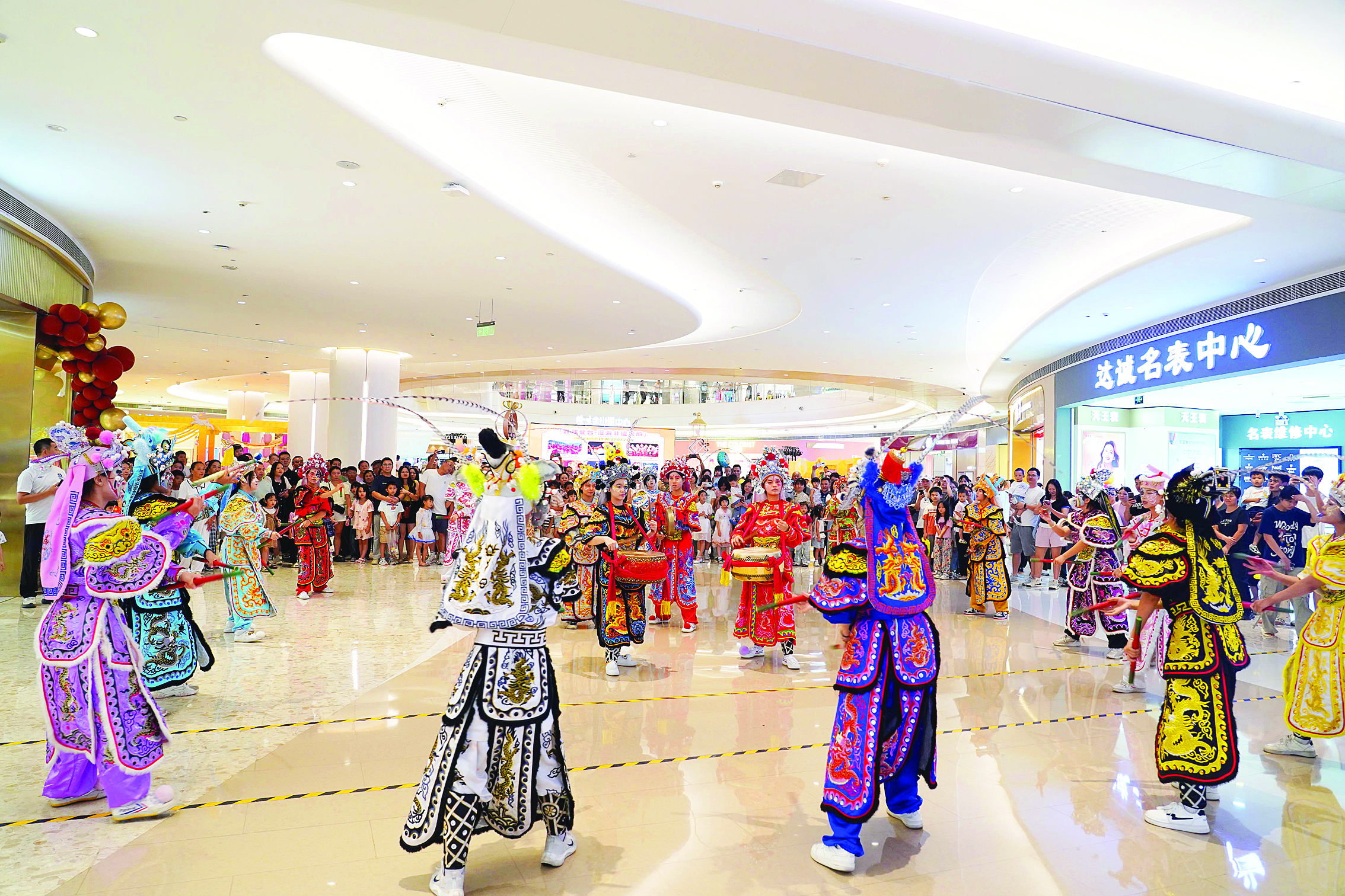 商場(chǎng)舉辦的英歌舞表演很受歡迎。 惠州日?qǐng)?bào)記者李松權(quán) 劉煒煒 攝