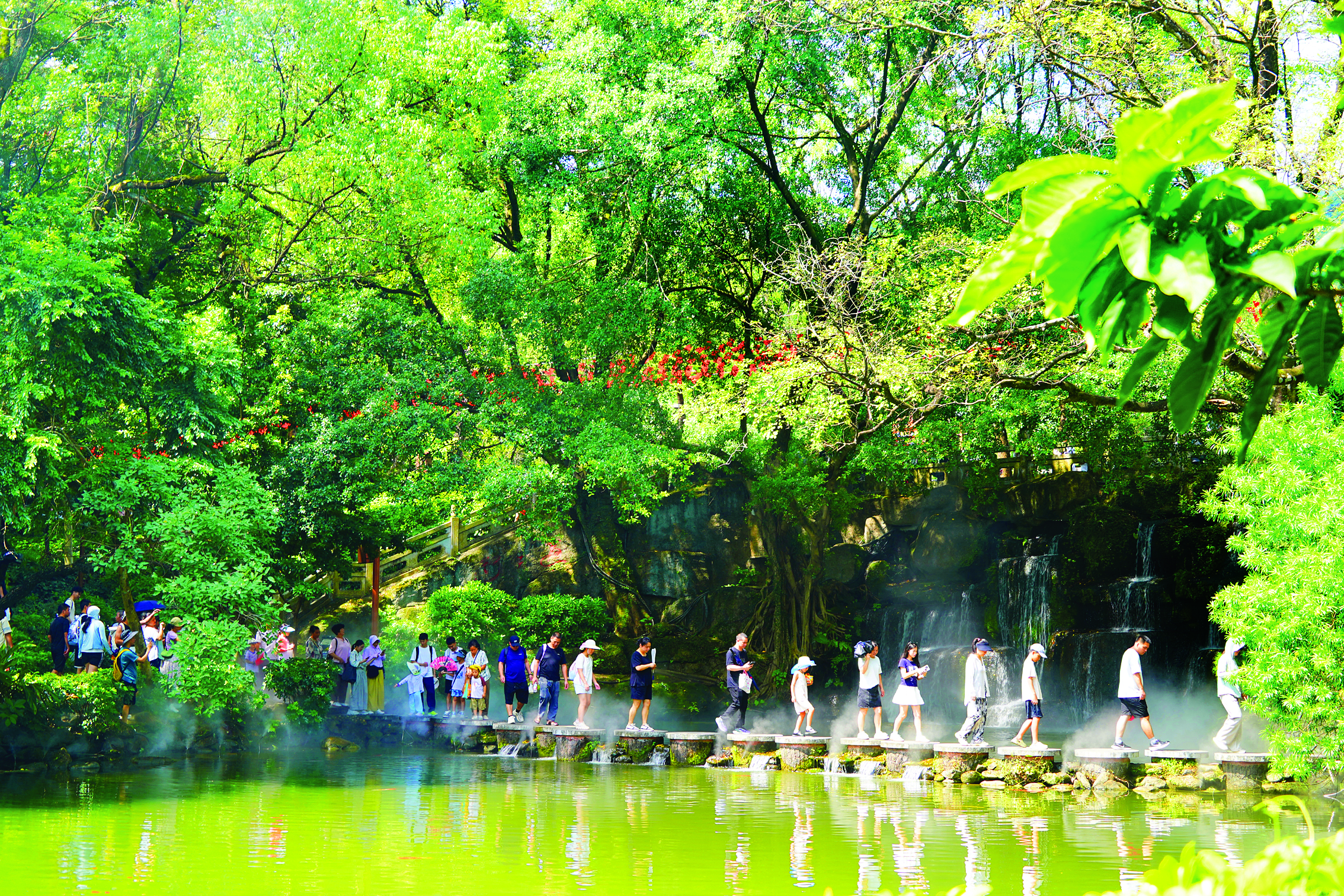 游客在羅浮山景區(qū)游玩;葜萑請(bào)記者李燕文 特約通訊員李淵 攝