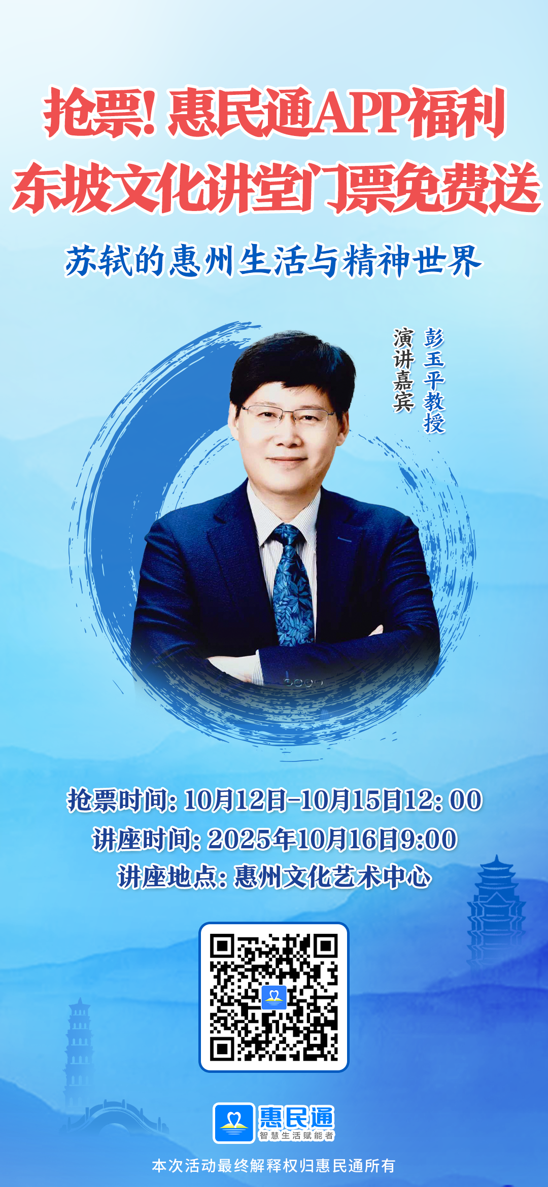 1. 報名成功后于10月15日上午9:30-12:00及下午14:30-22:30, 憑借報名姓名+手機號到惠州文化藝術(shù)中心領(lǐng)票。