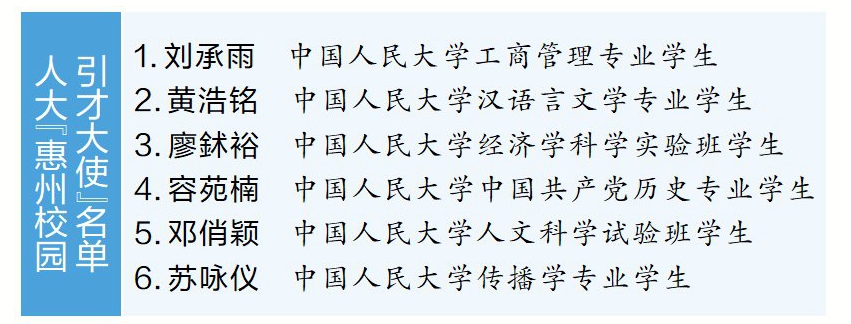10月17日,惠州市第四屆人才周進(jìn)校園(北京)專場活動走進(jìn)中國人民大學(xué)。在城市專場推介會上,6位惠州籍學(xué)子被聘為“惠州校園引才大使”,一股新鮮而充滿活力的青春力量,將在這所人文社科底蘊深厚的高等學(xué)府,為家鄉(xiāng)的招才引智工作發(fā)出“惠州聲音”。