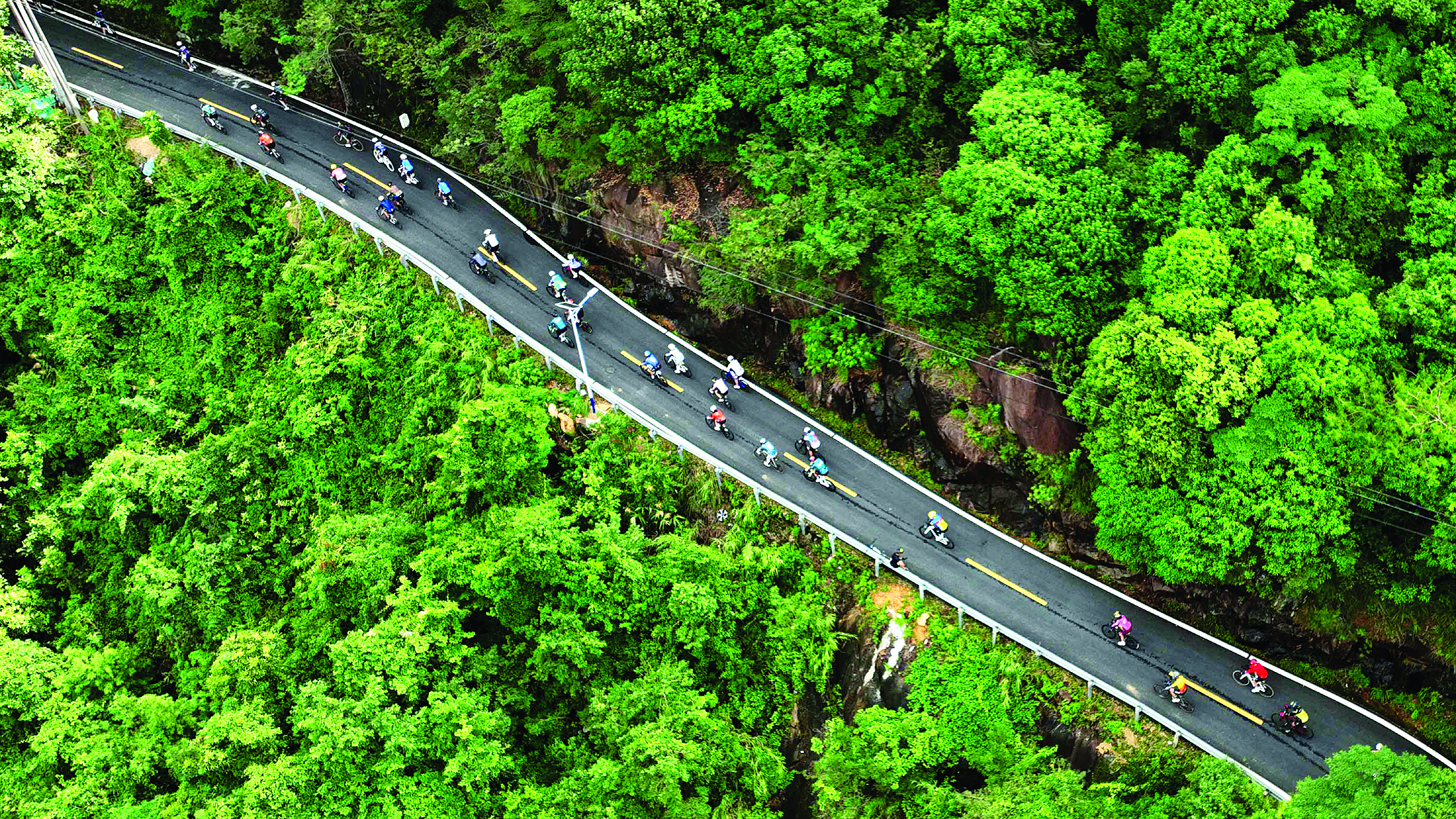 自行車運(yùn)動(dòng)愛好者在惠州218最美旅游公路上騎行;葜萑請(bào)記者李松權(quán) 攝