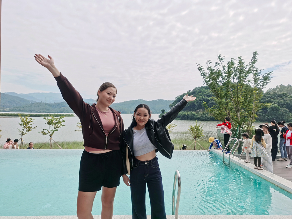 國(guó)際旅游達(dá)人在顯崗水庫(kù)驛站拍照留念。