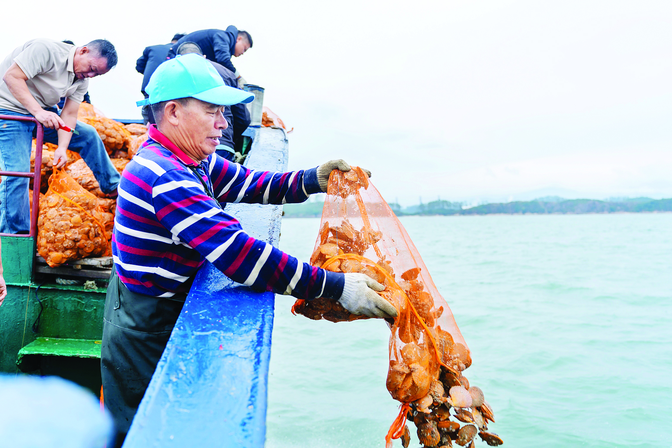 大量扇貝投放入海;葜萑?qǐng)?bào)記者張宇琪 通訊員吳霖輝 攝