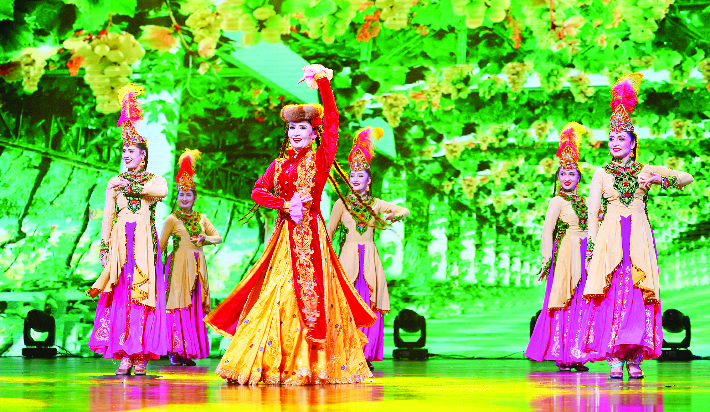 開場舞蹈《魅力喀什》拉開演出序幕。歌曲《跟我到新疆來》以歡快的旋律邀請觀眾共赴絲路之旅,而器樂表演《新疆是個好地方》熱情勾勒天山南北的壯美畫卷。舞蹈《罐舞流光》、歌曲《一杯美酒》、舞蹈串燒《嘉年華》、器樂表演《青春舞曲》、舞蹈《花兒一樣的你》、歌曲《民歌聯(lián)唱》、舞蹈《百花齊放》等節(jié)目精彩紛呈。演出尾聲以互動麥西來普《蘋果香》推向高潮。